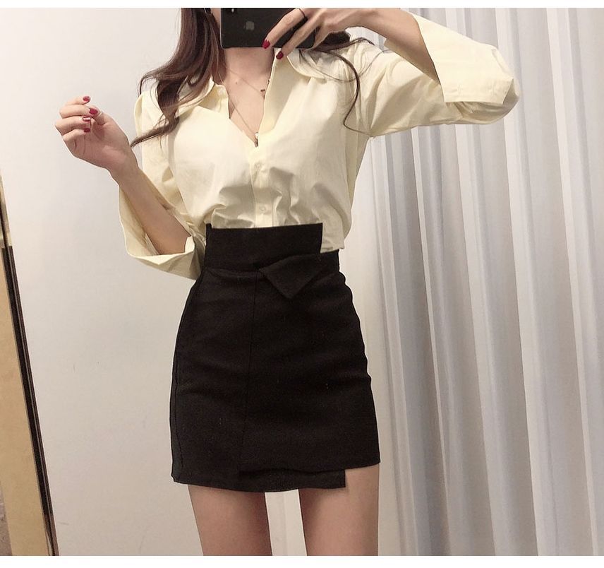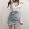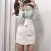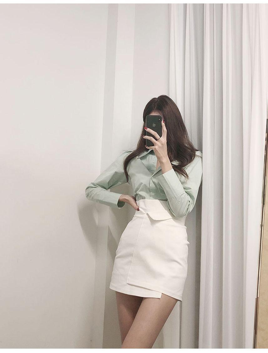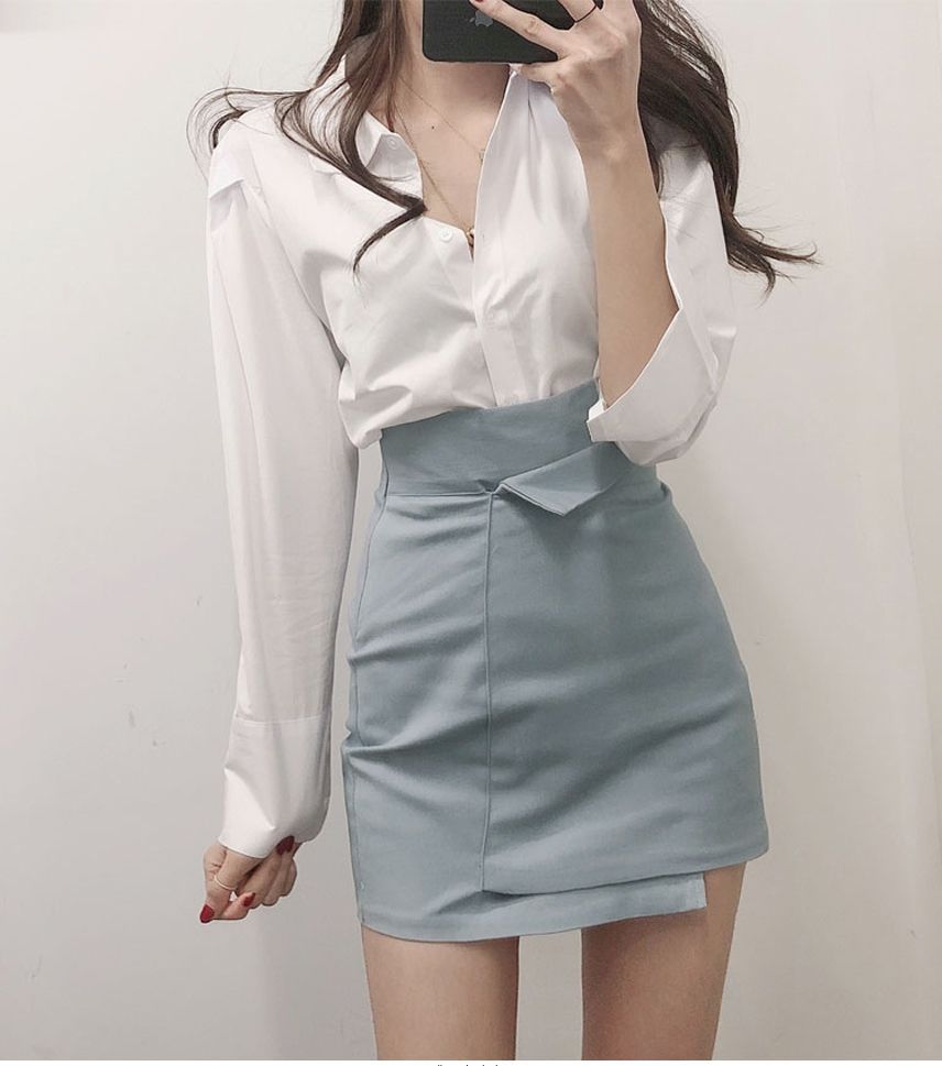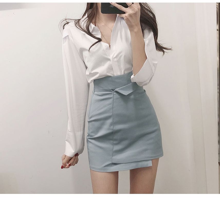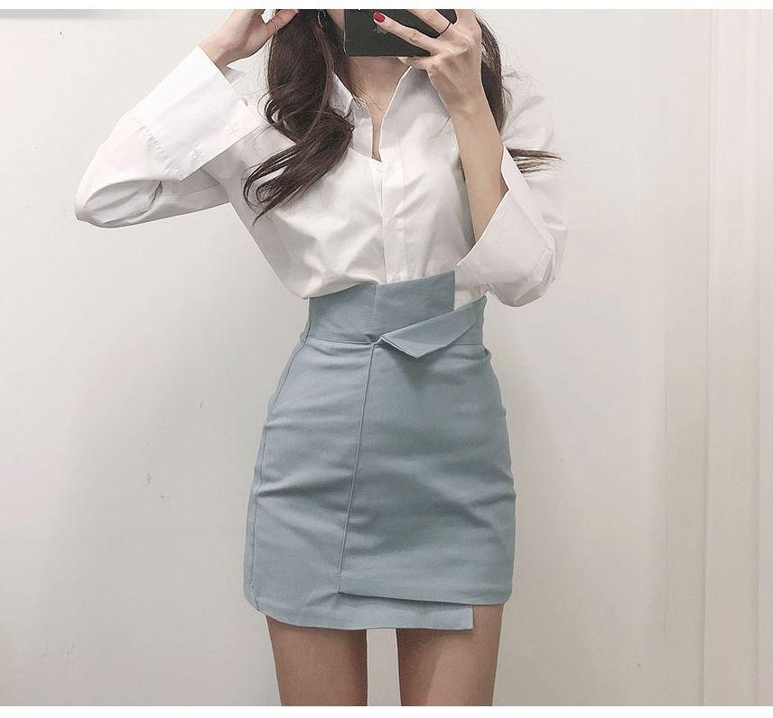 Falda de dos piezas, camisa blanca para mujer, top irregular, línea A, falda a la cadera, traje de falda adelgazante de cintura alta