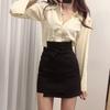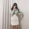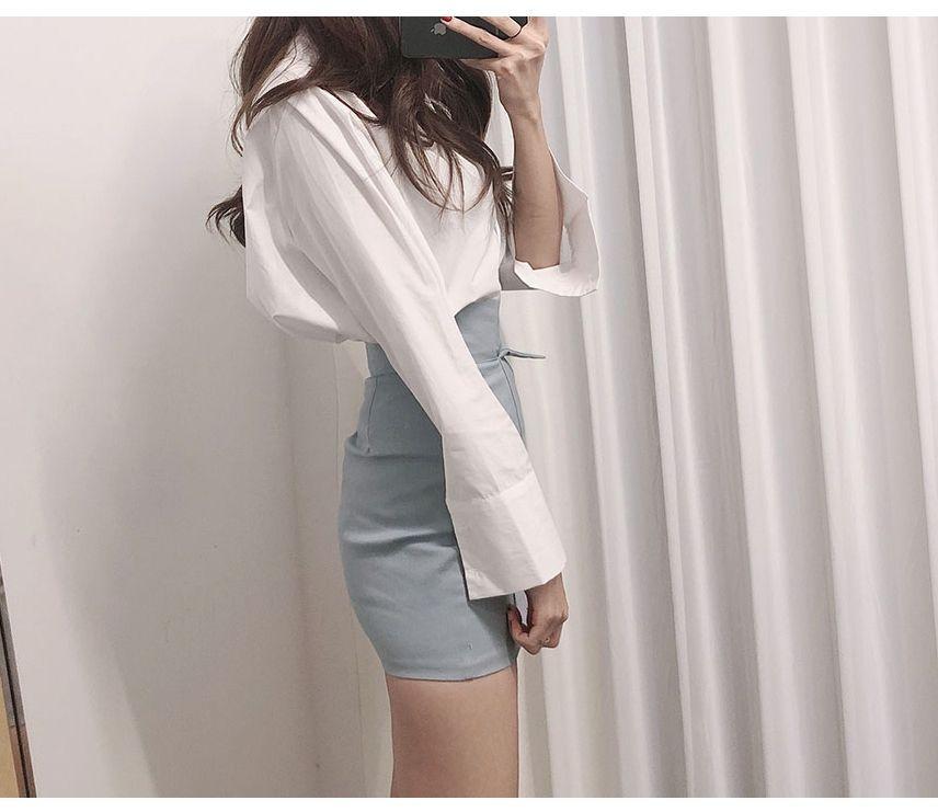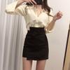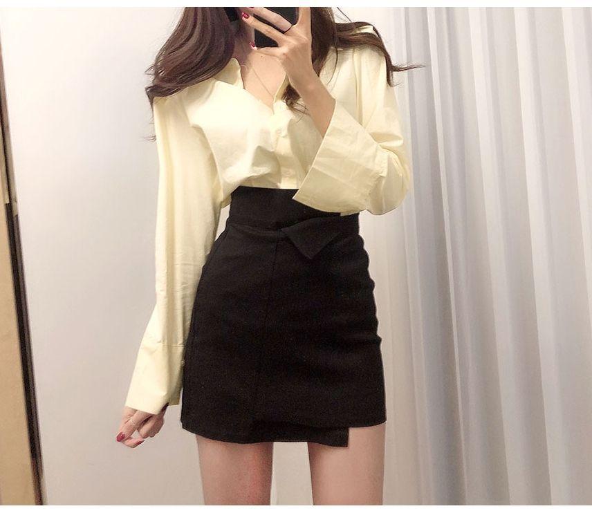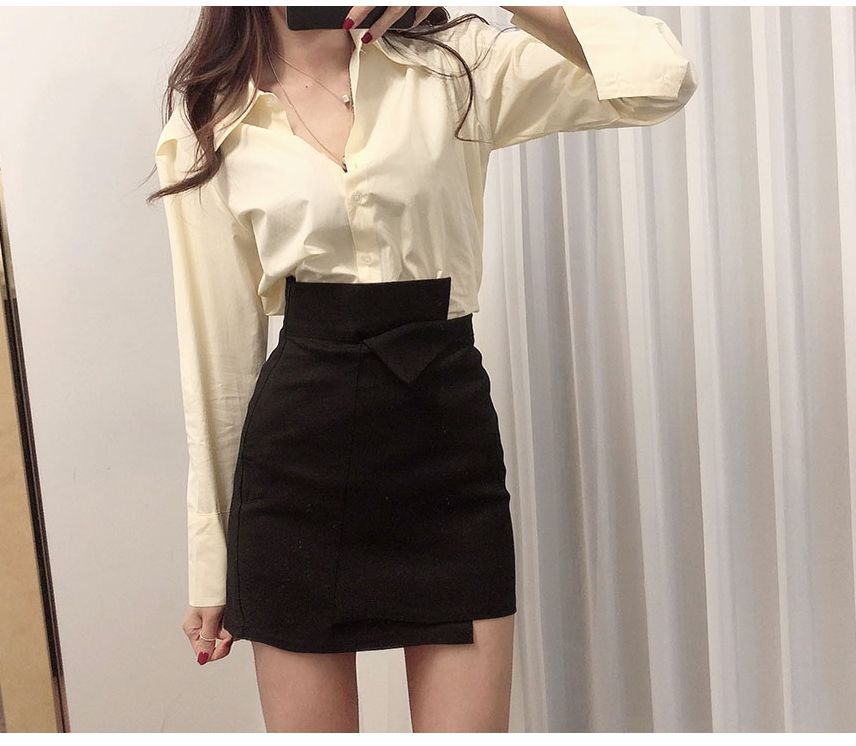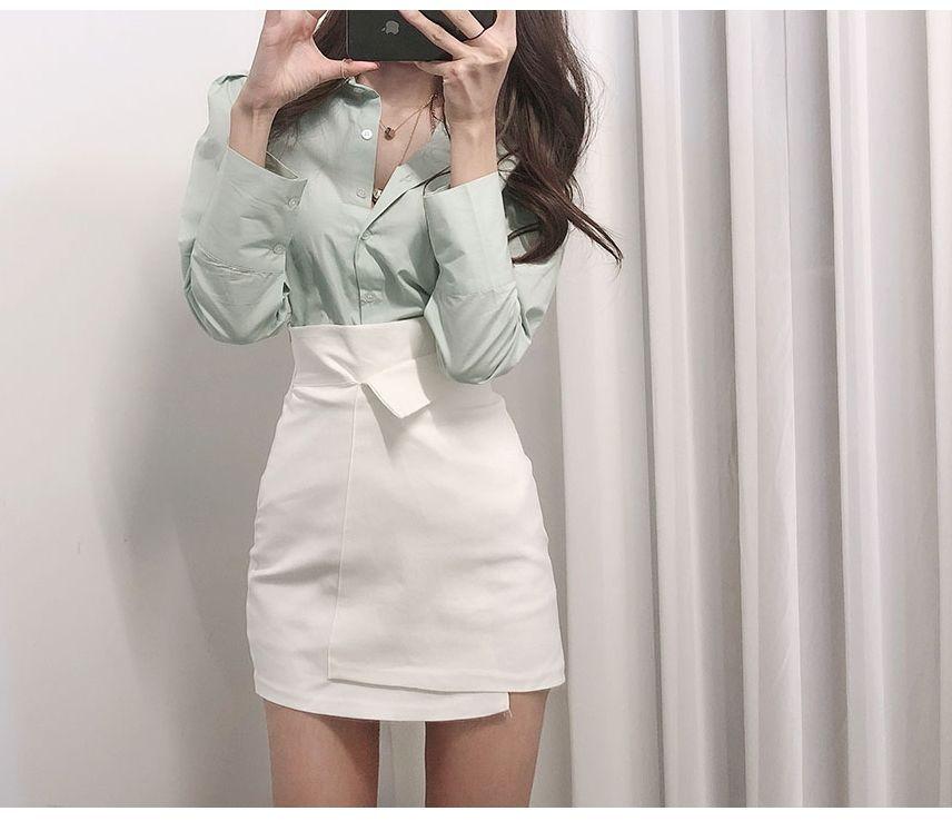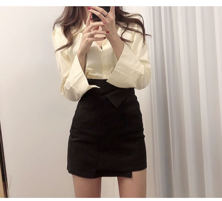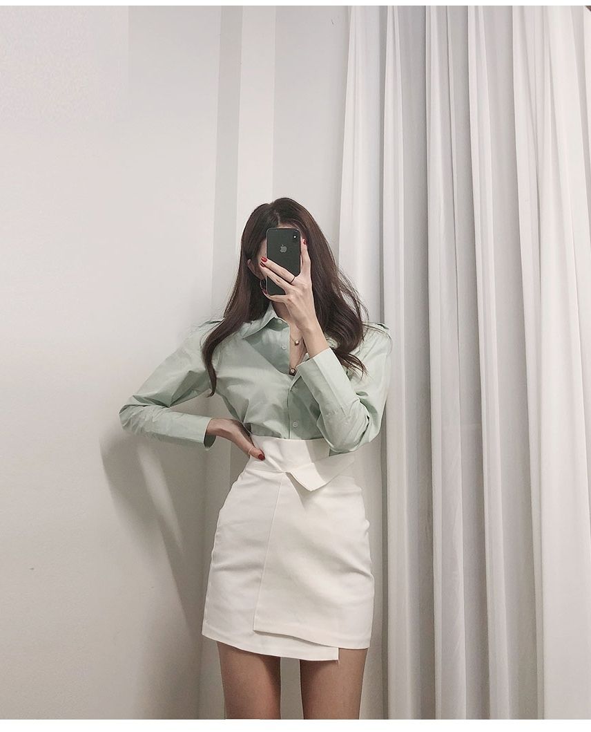 Falda de dos piezas, camisa blanca para mujer, top irregular, línea A, falda a la cadera, traje de falda adelgazante de cintura alta