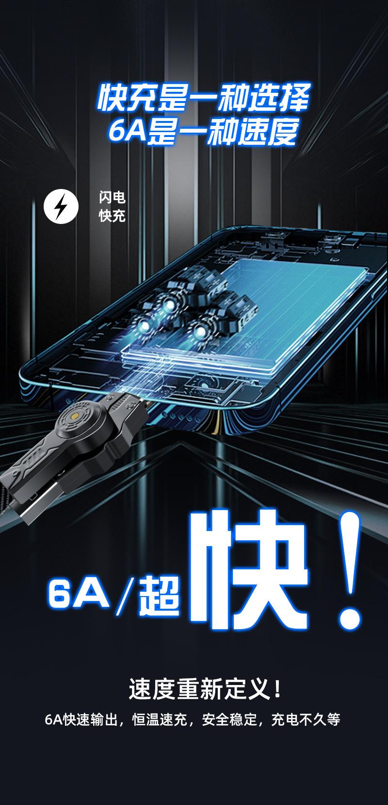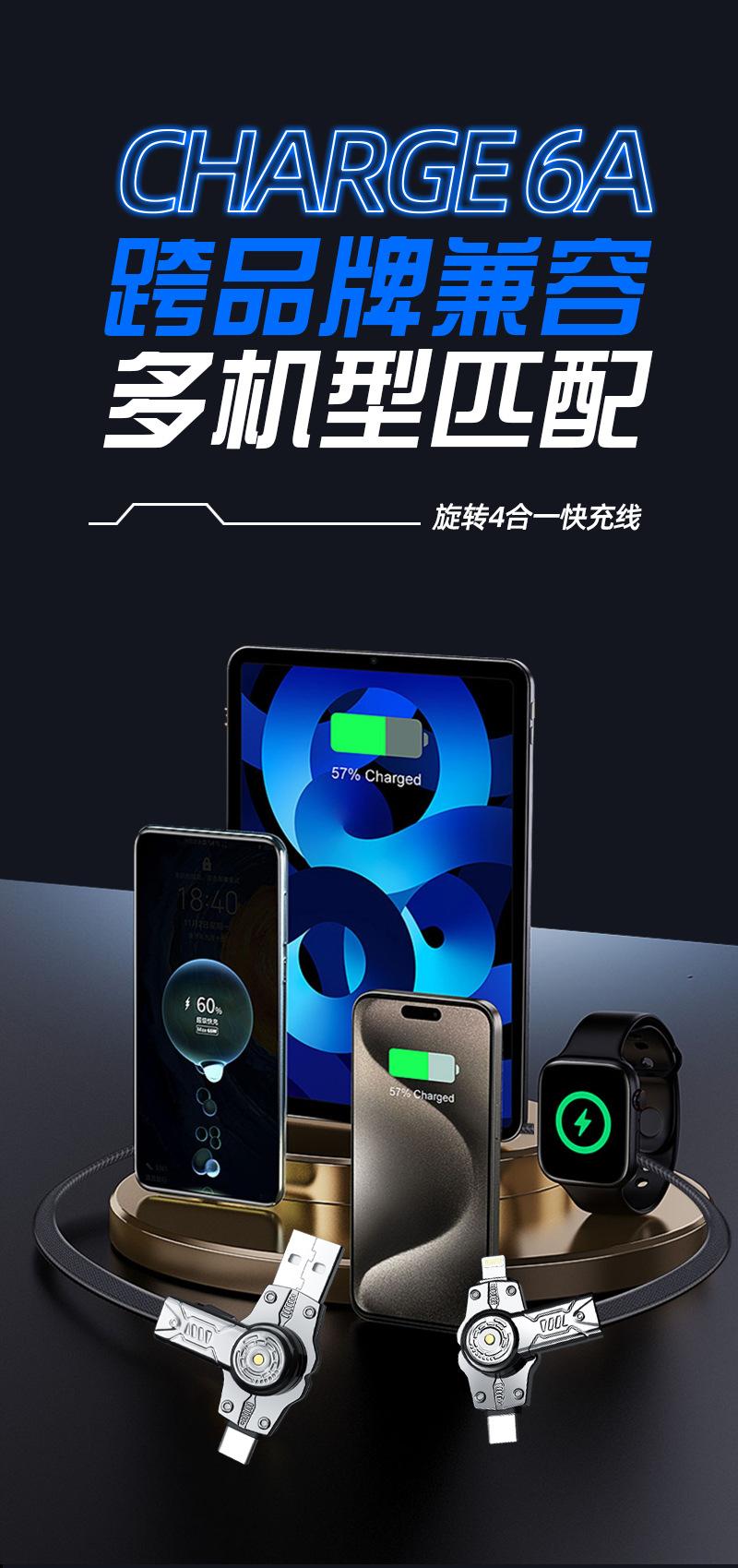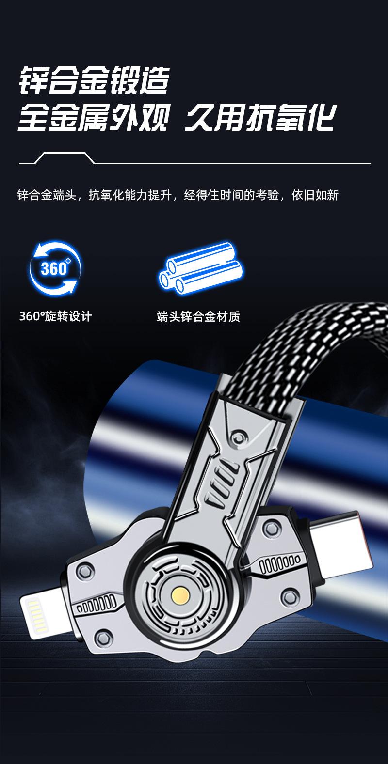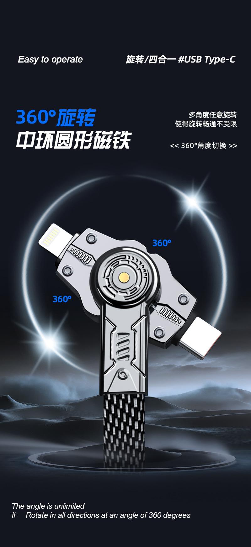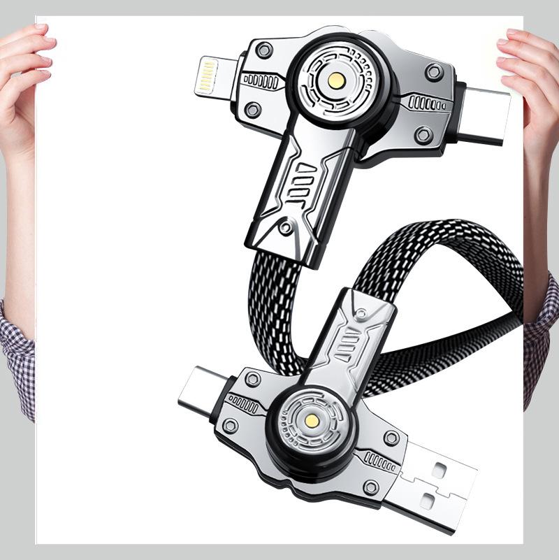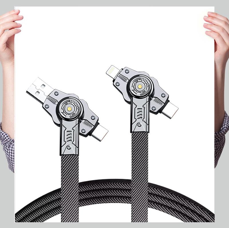Línea de carga cuatro en uno 360 de doble cabezal giratorio de carga súper rápida tipo C doble es adecuada para el cable de datos Apple Huawei