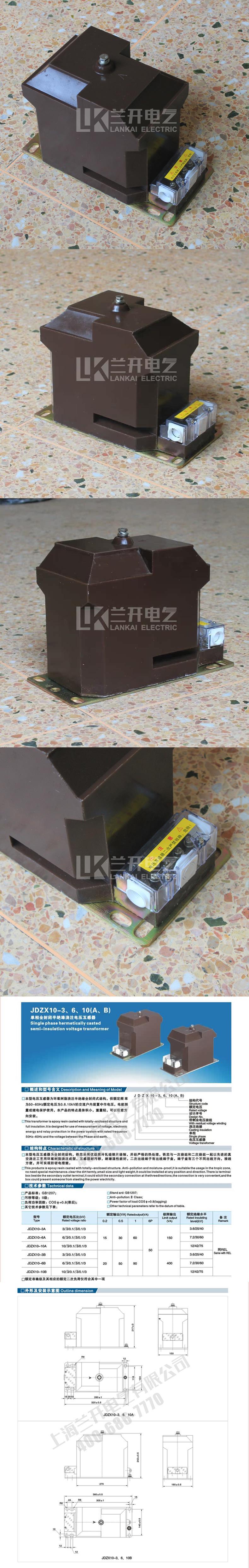 Transformador de tensión monofásico JDZX10-10 en gabinete de alta tensión semiaislado totalmente cerrado de 10 kV para interiores JDZ10-10