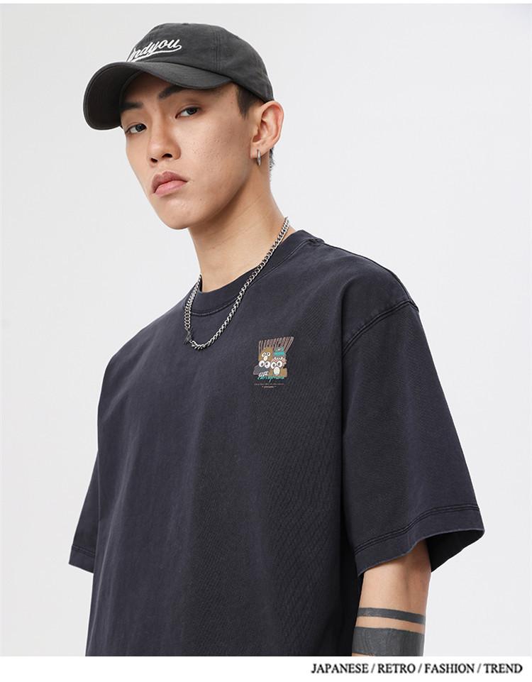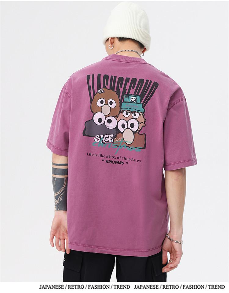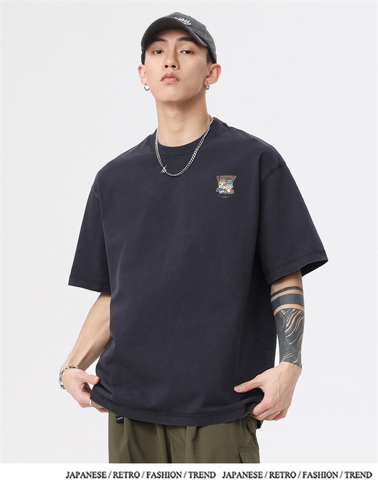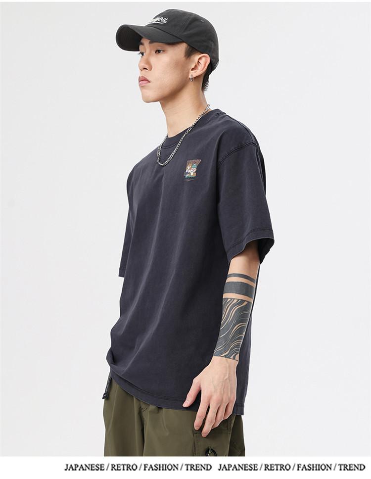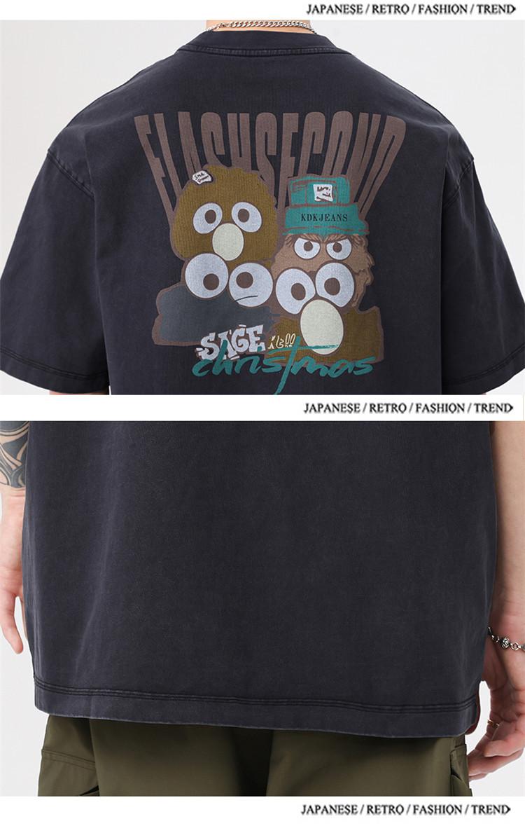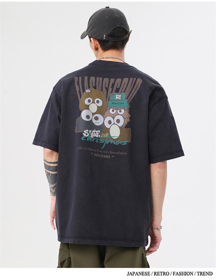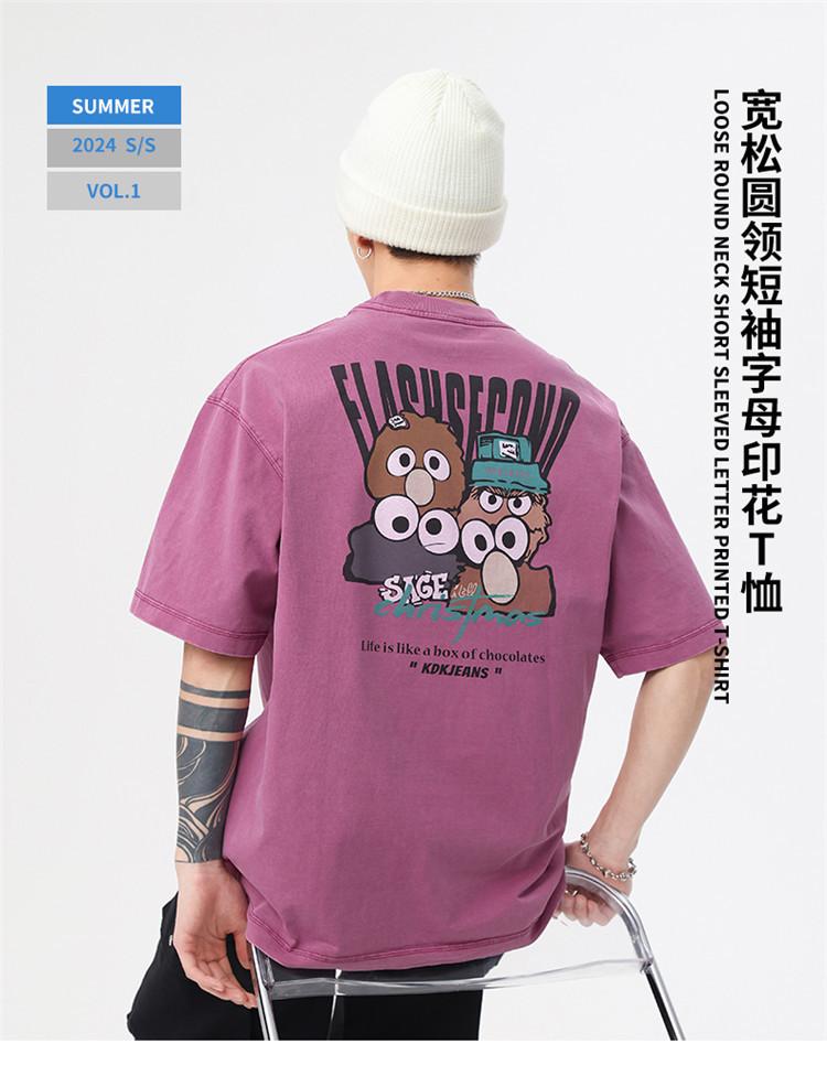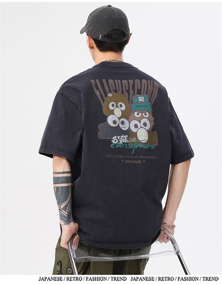 Camiseta de manga corta estampada de marca de moda nueva 2024 para hombre, primavera y verano, camiseta de algodón puro de peso pesado, top holgado retro americano