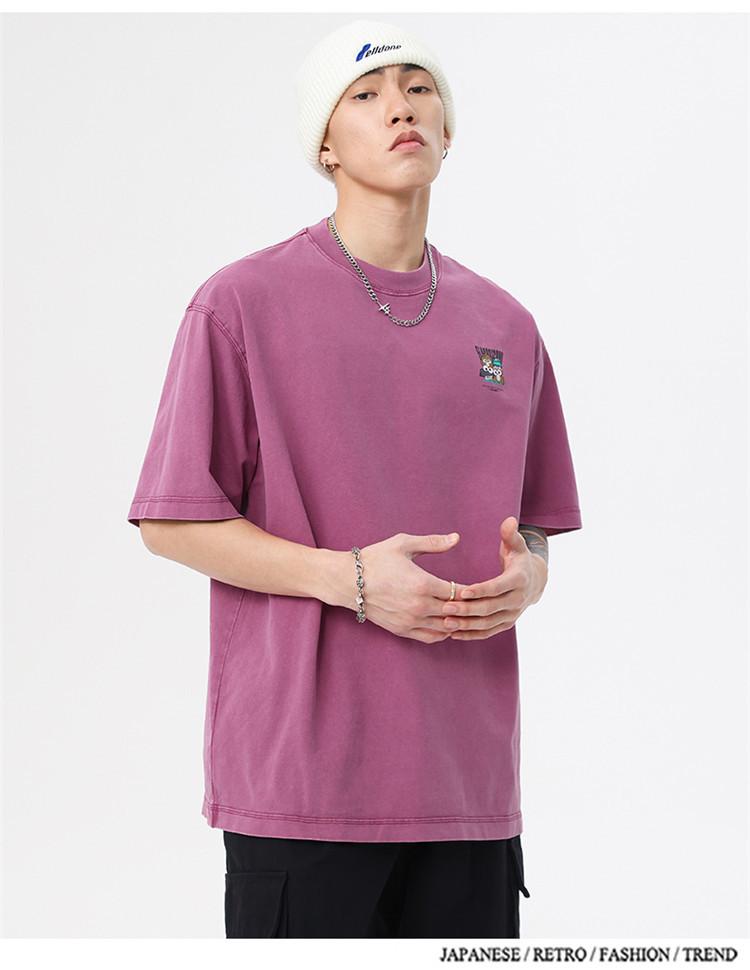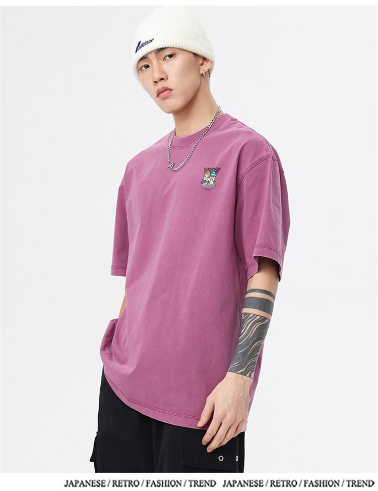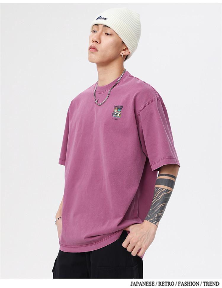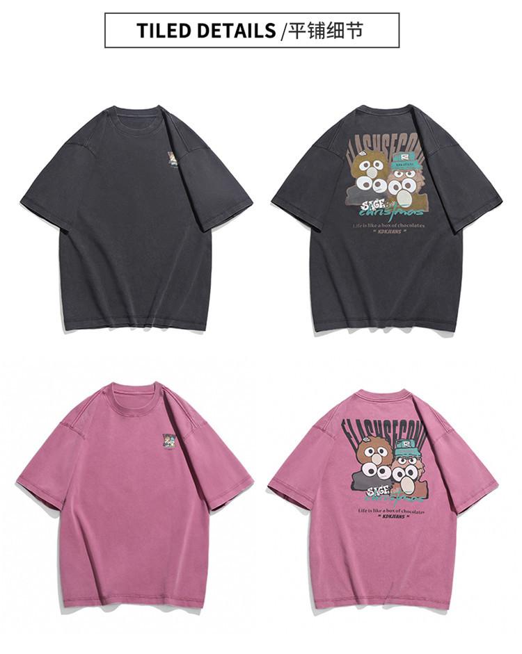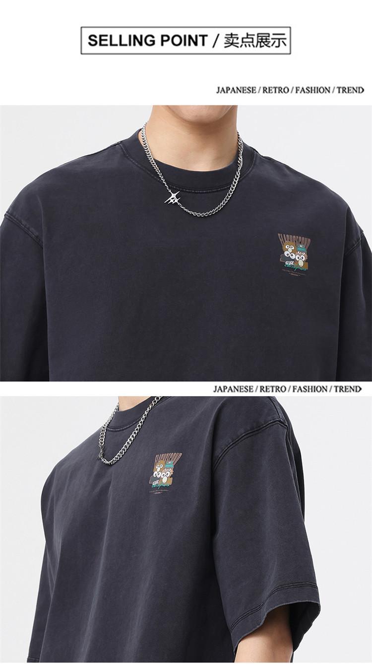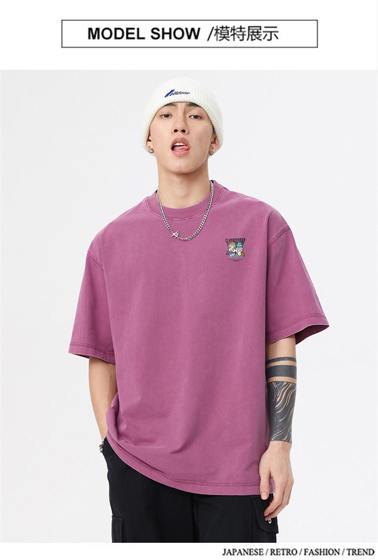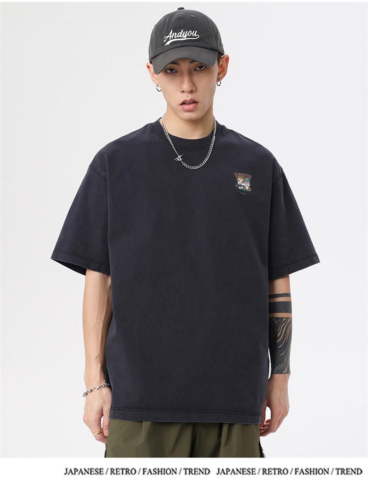 Camiseta de manga corta estampada de marca de moda nueva 2024 para hombre, primavera y verano, camiseta de algodón puro de peso pesado, top holgado retro americano