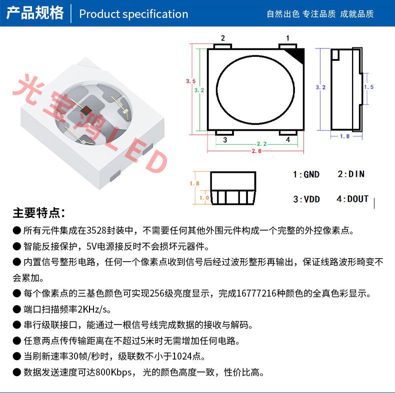 Personalizado de fábrica 3528 Sinfonía 5V Rgb de cuatro patas Programable Chip IC Incorporado Cuentas de lámpara Led de teclado Bluetooth colorido