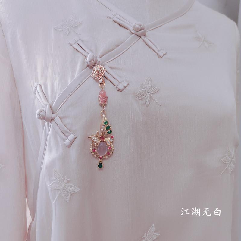[Mariposa] Colgante de cheongsam de estilo chino clásico original, colgante de calcedonia natural, accesorio para ropa de té Hanfu