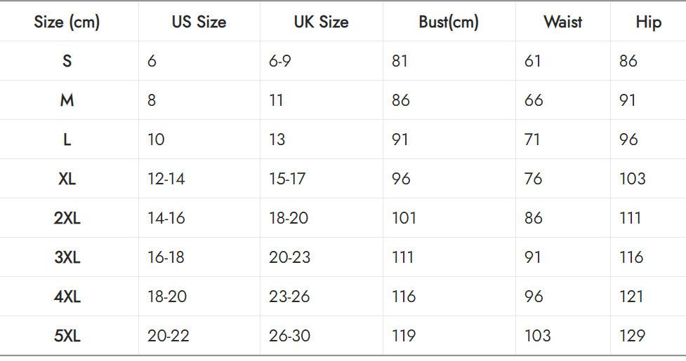 S, M, L, XL, XXL, XXXL, 4XL, 5XL