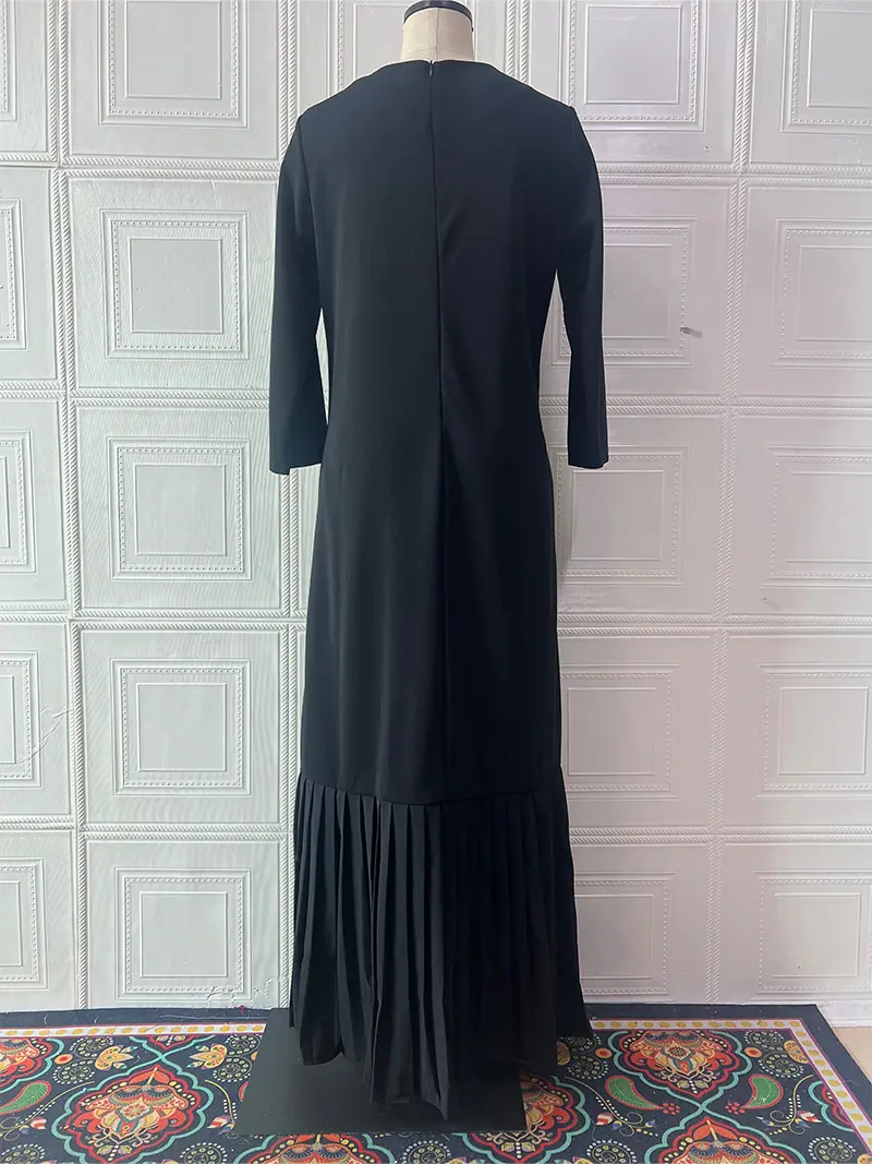 Amazon Transfronterizo 2024 Otoño Europeo y Americano Nuevo Vestido Retro Slim de Manga Larga de Color Sólido con Cuello Redondo