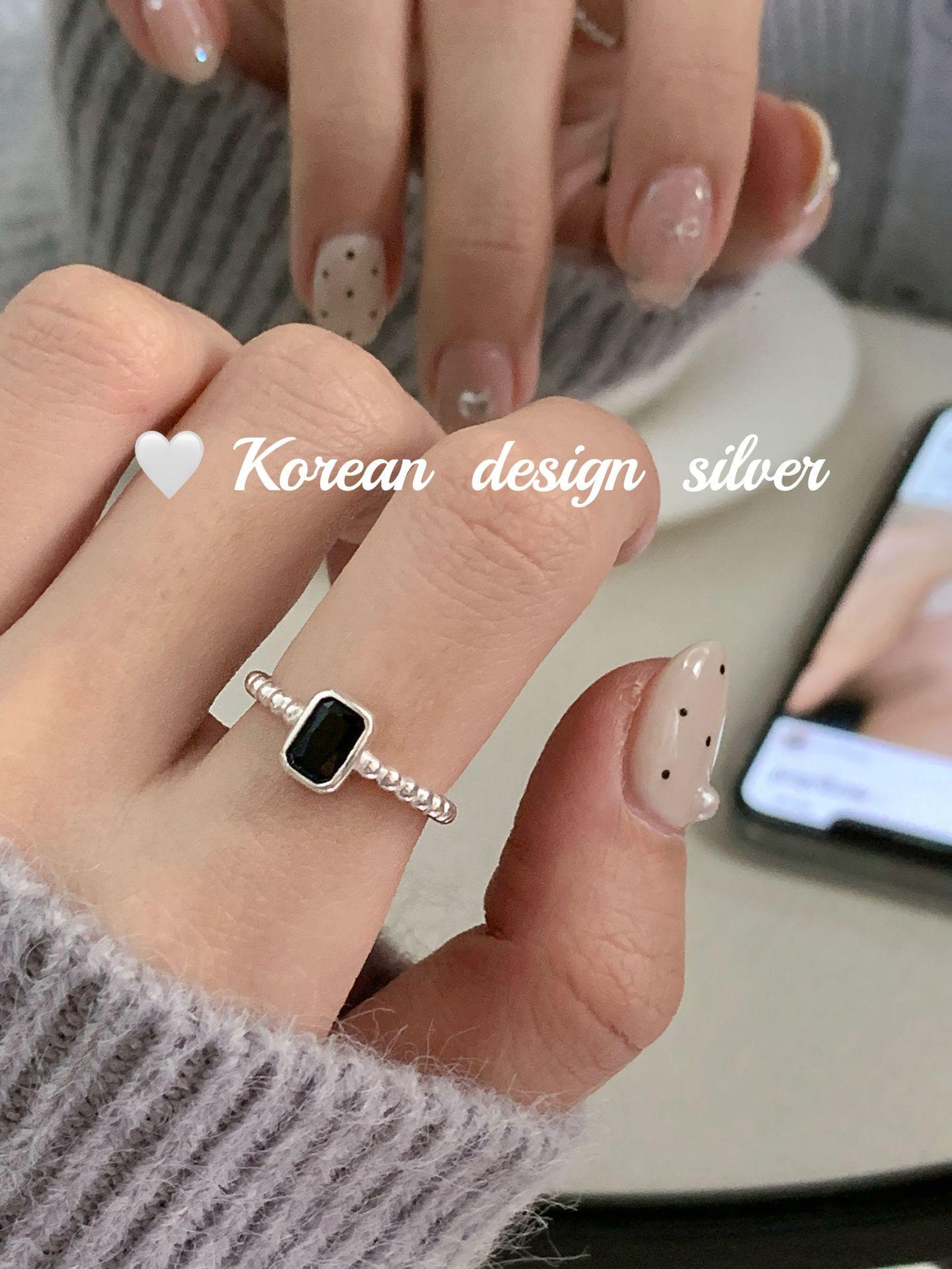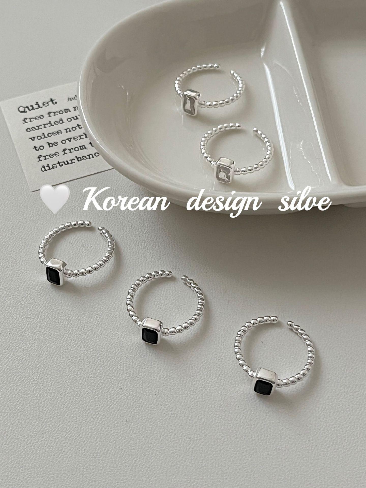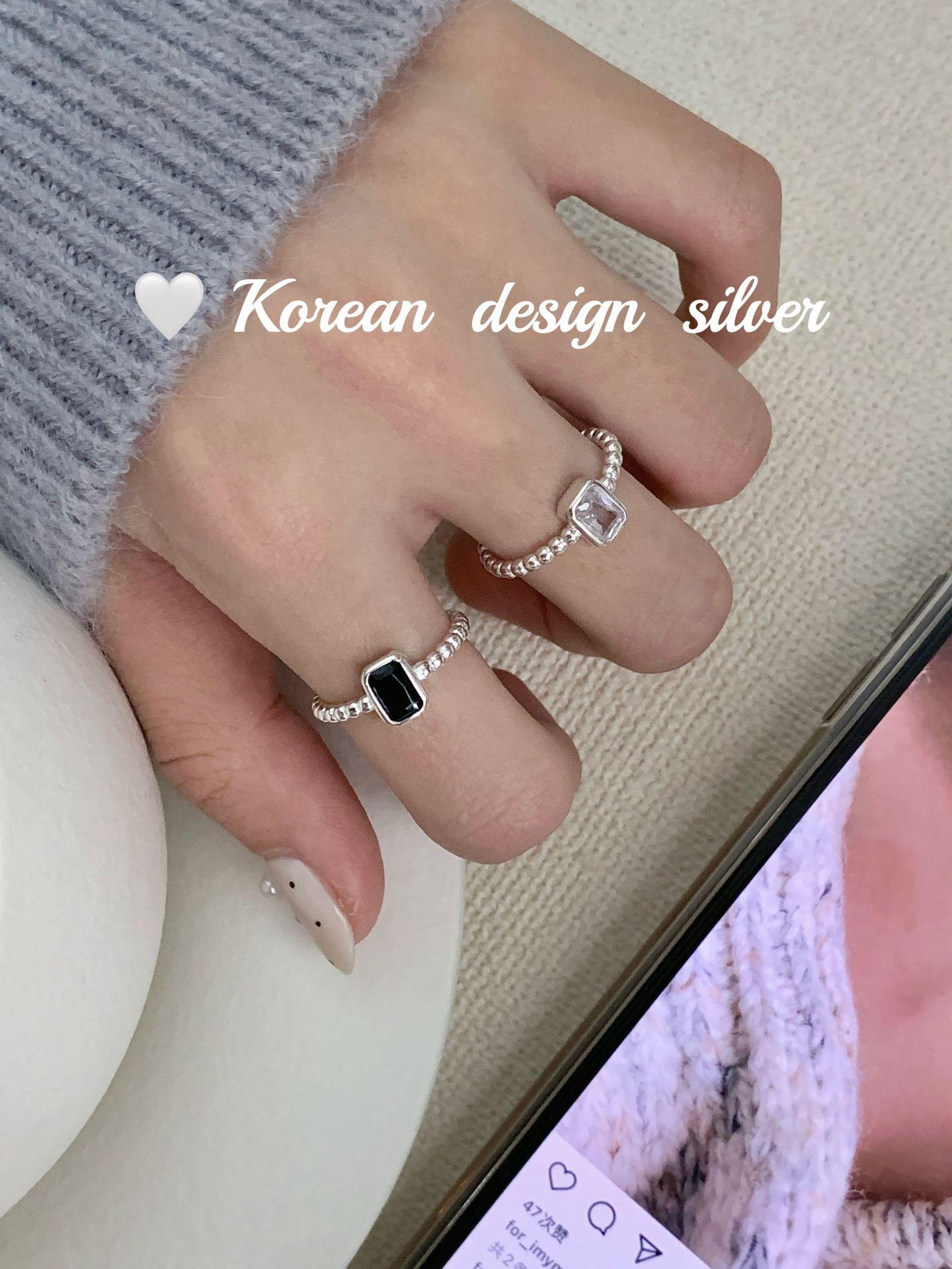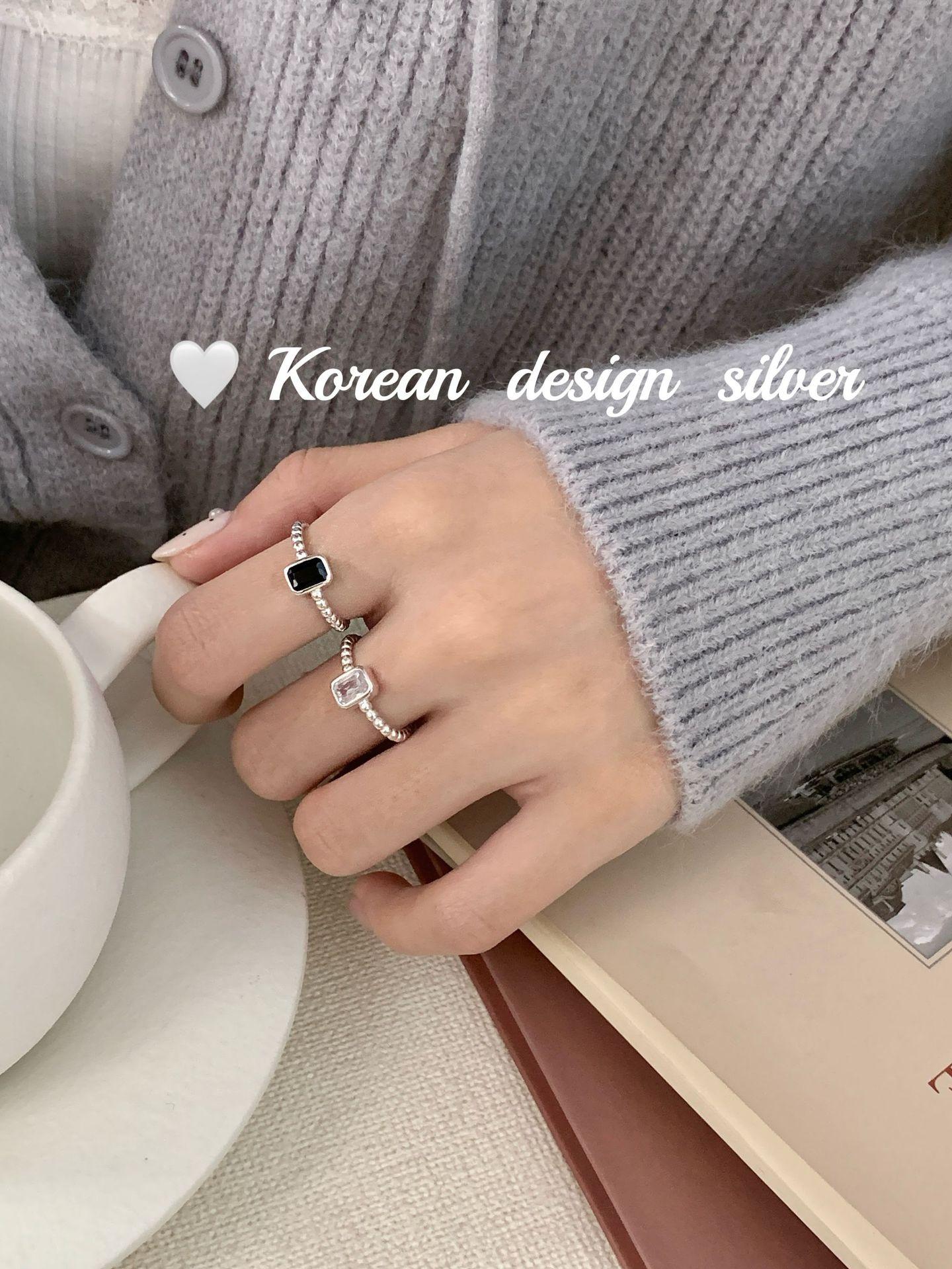 Anillo elegante de moda estilo Dongdaemun Ins de Corea del Sur con cuentas de circonitas blancas y negras cuadradas de plata esterlina S925, combina con todo.