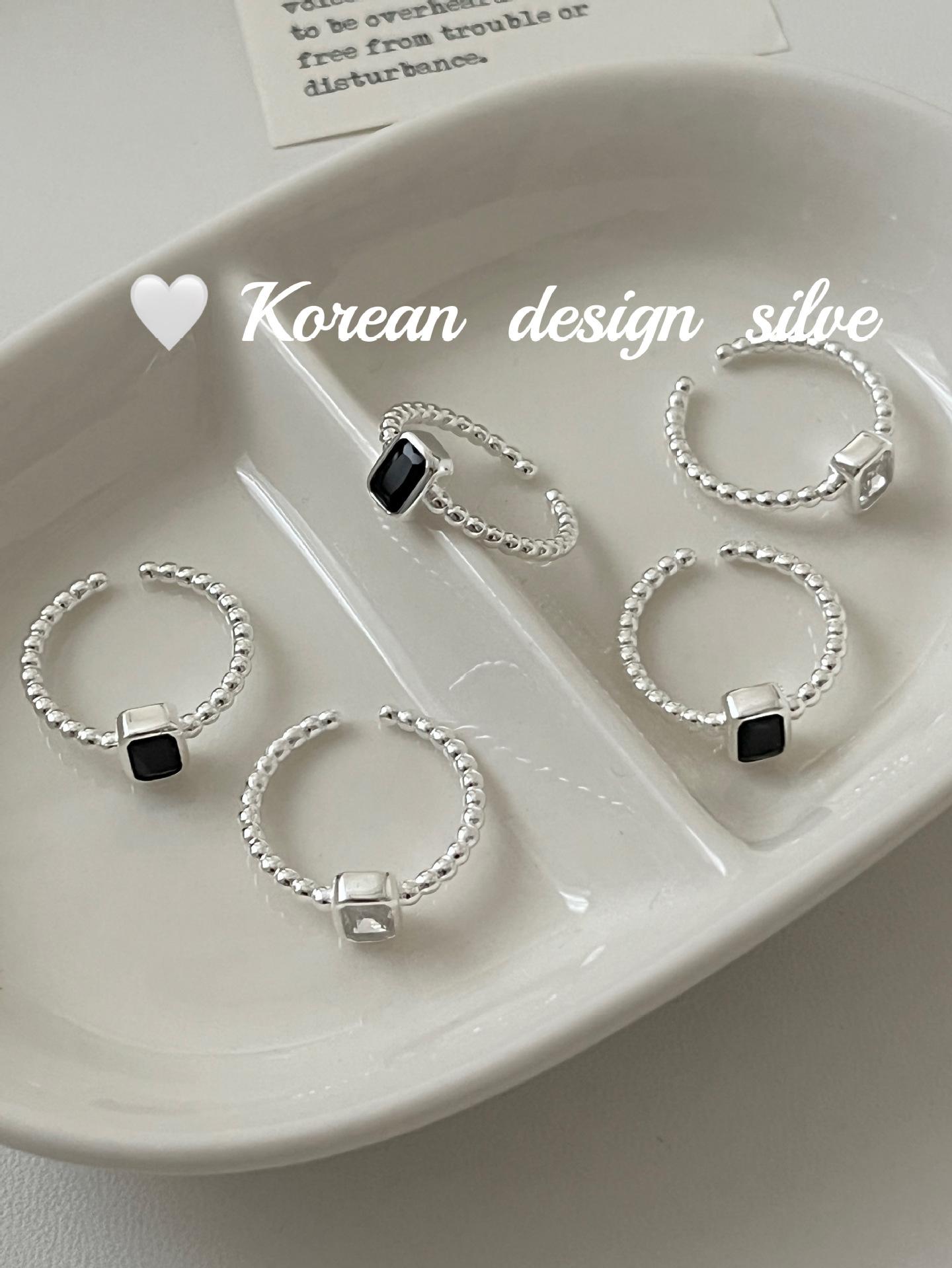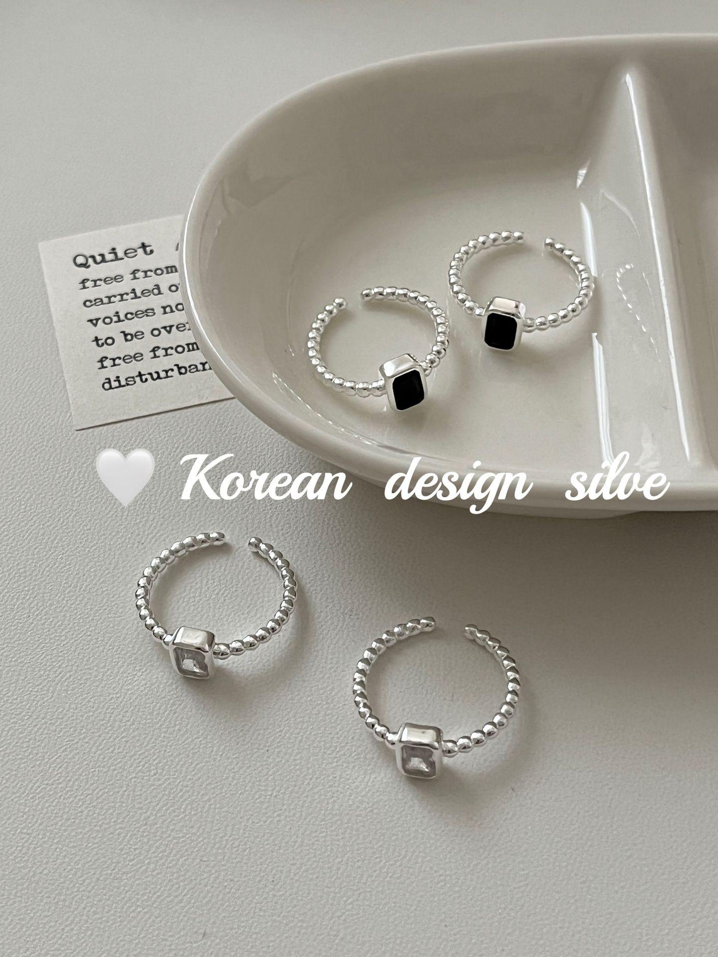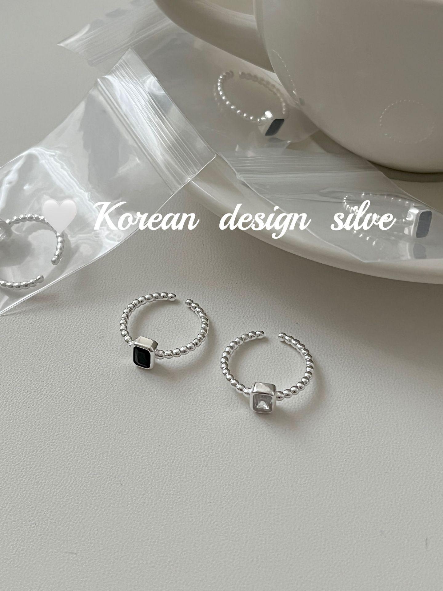 Anillo elegante de moda estilo Dongdaemun Ins de Corea del Sur con cuentas de circonitas blancas y negras cuadradas de plata esterlina S925, combina con todo.