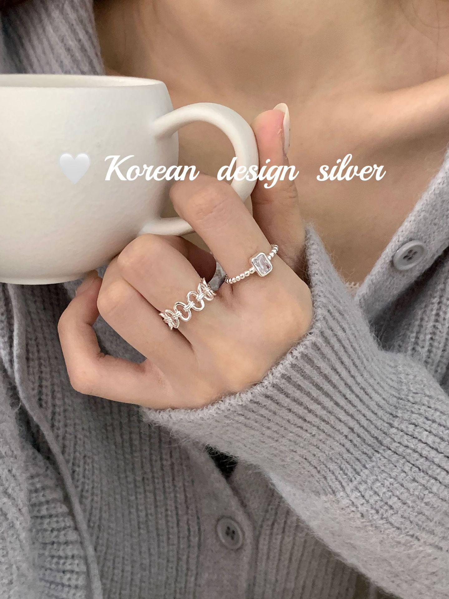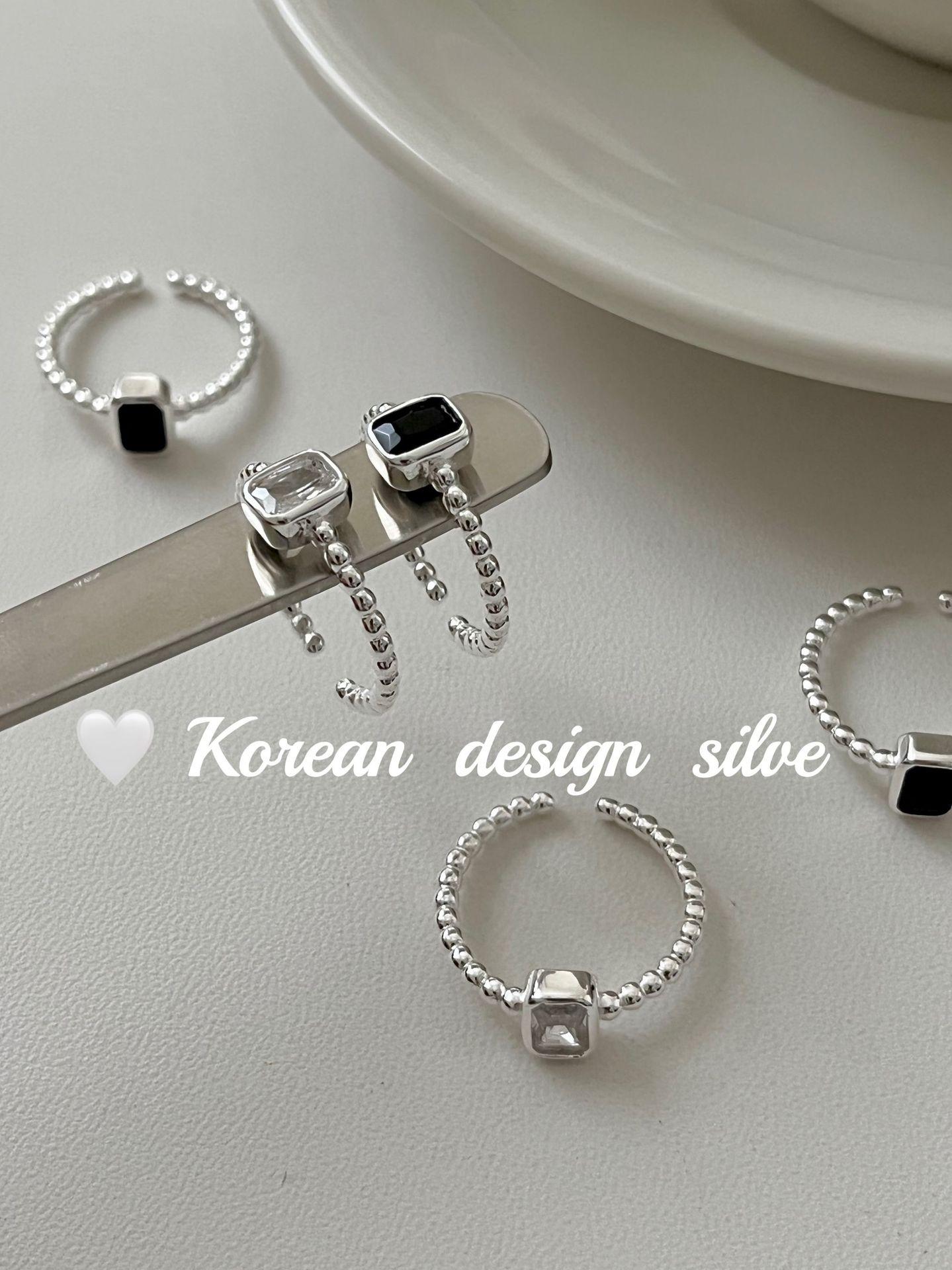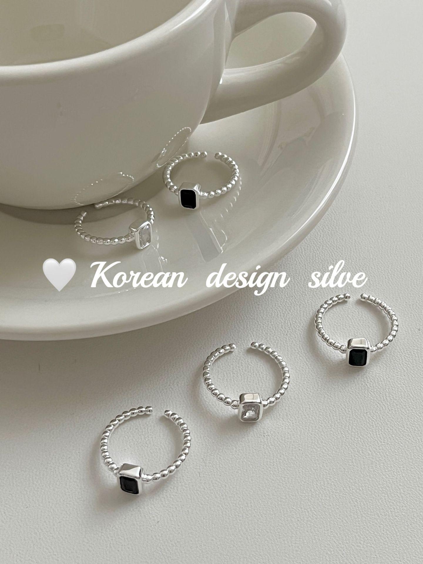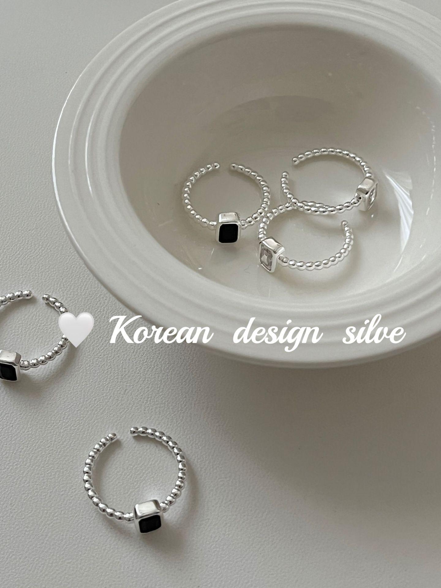 Anillo elegante de moda estilo Dongdaemun Ins de Corea del Sur con cuentas de circonitas blancas y negras cuadradas de plata esterlina S925, combina con todo.