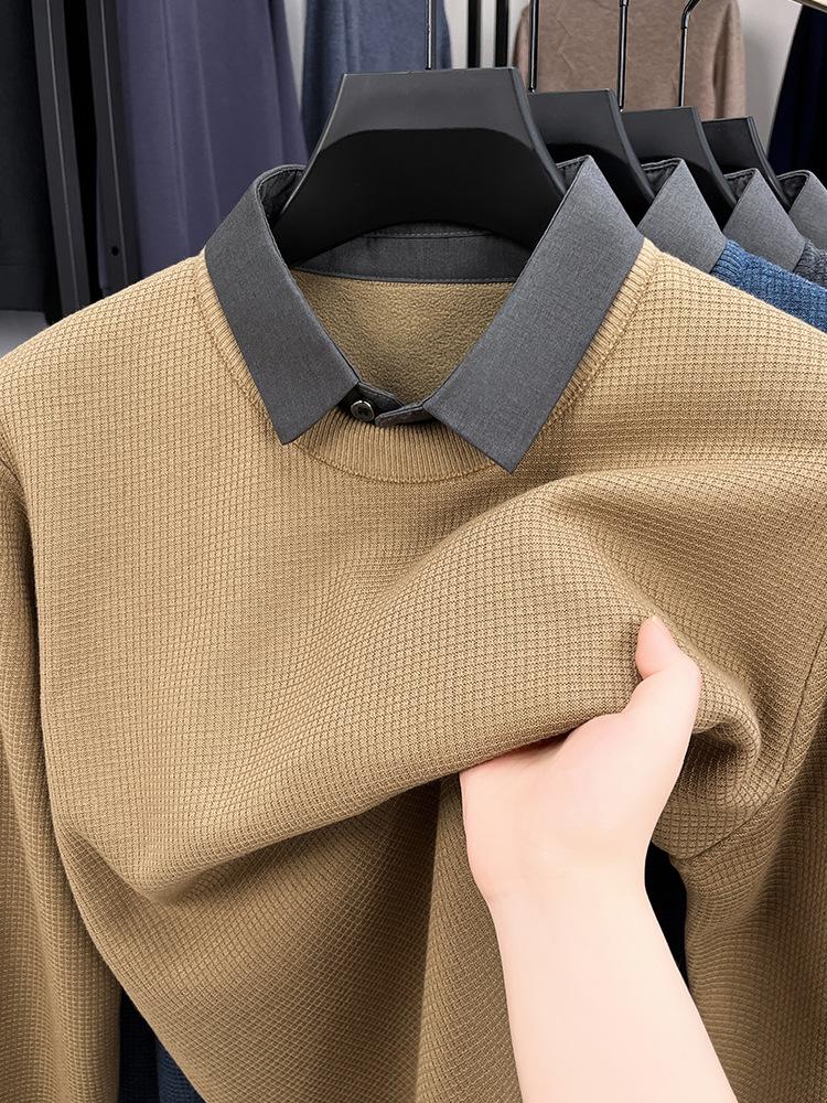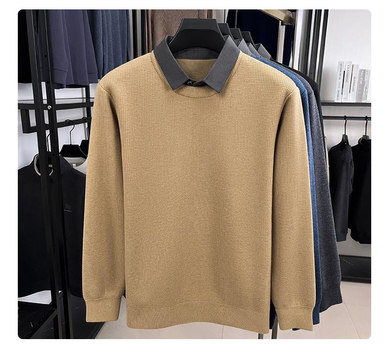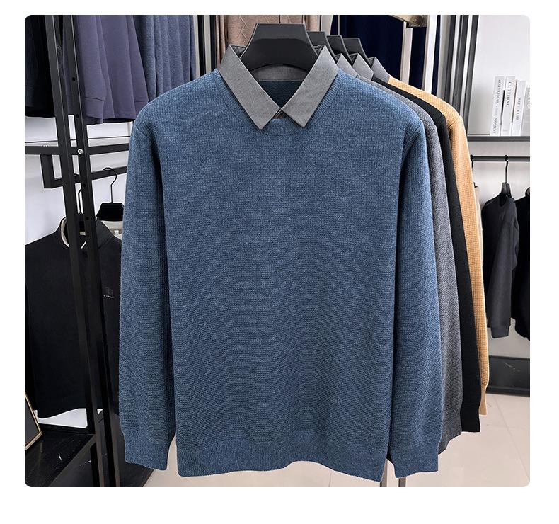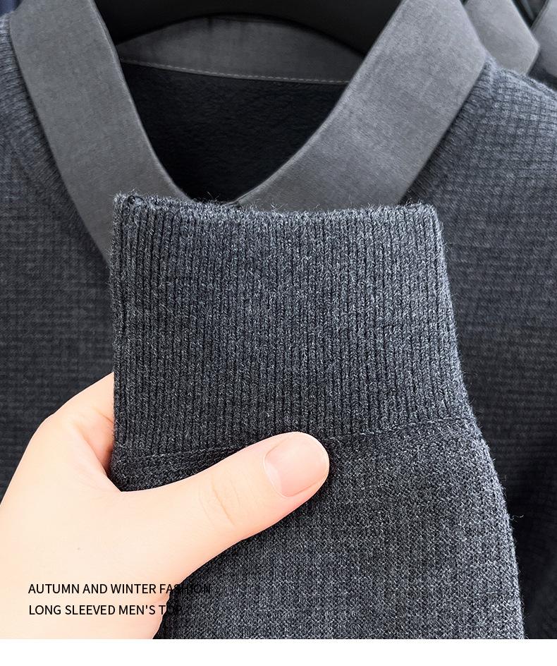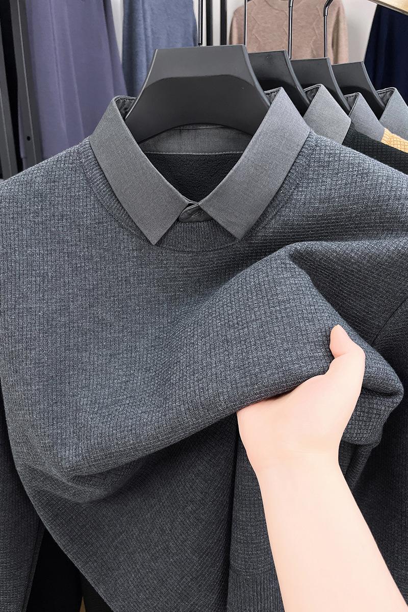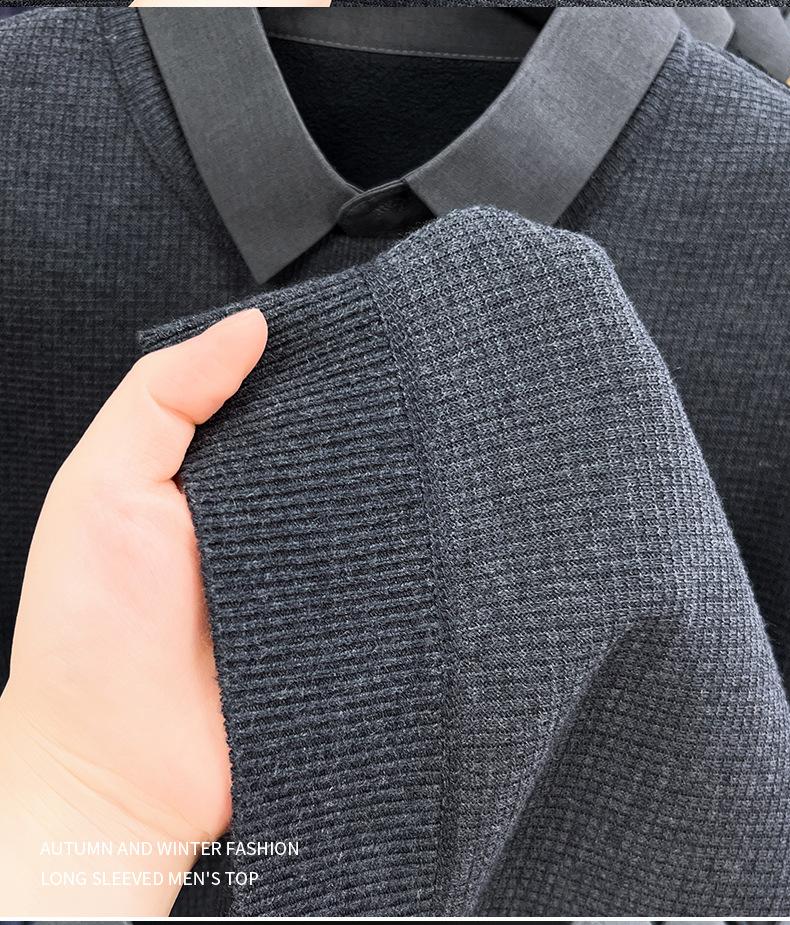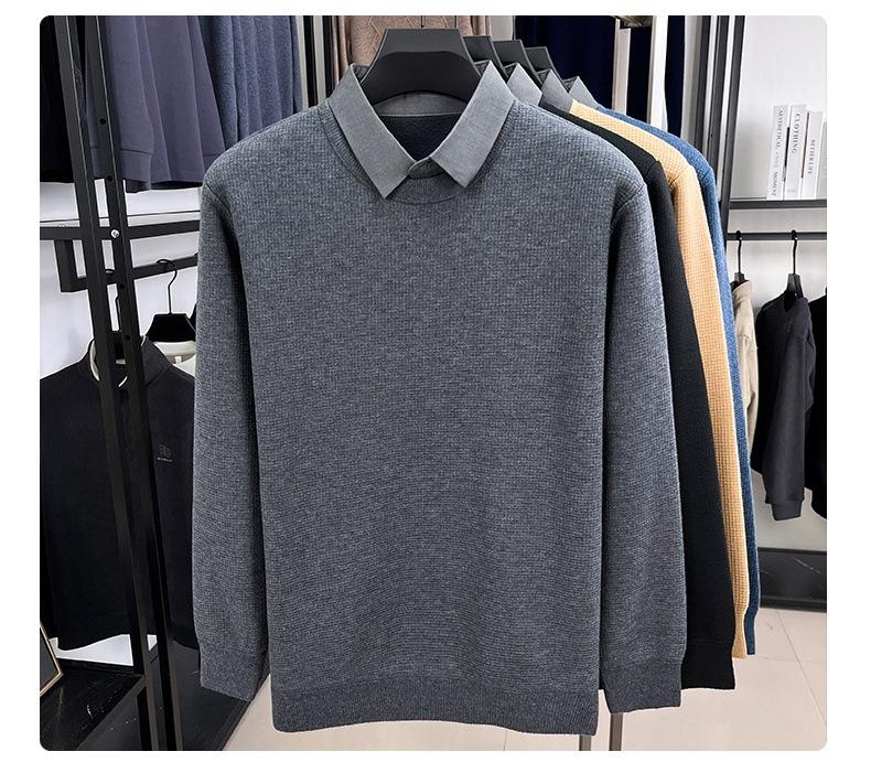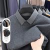 Suéter de dos piezas con forro polar para hombre, nuevo suéter de invierno con cuello de camisa, grueso y cálido, con lana de oveja.