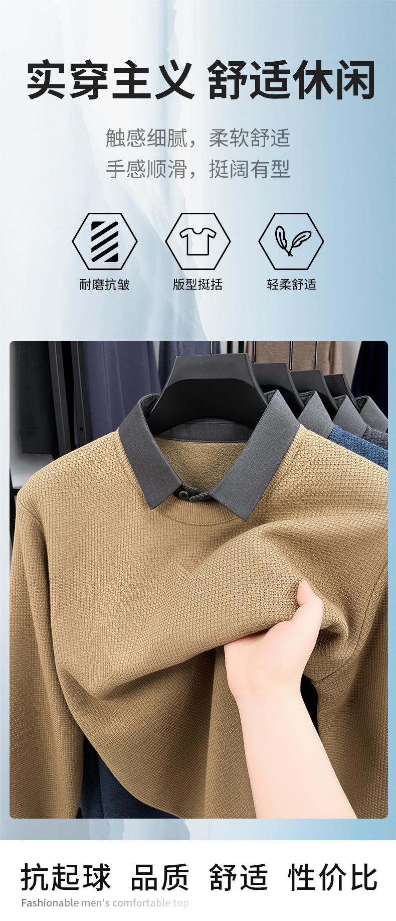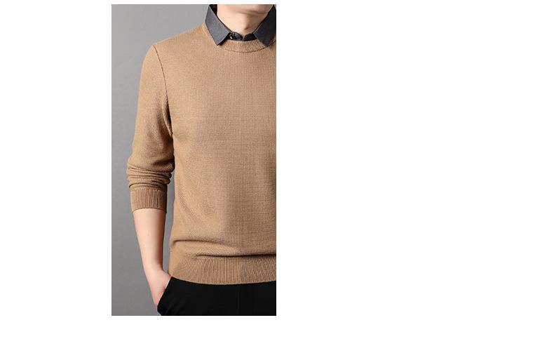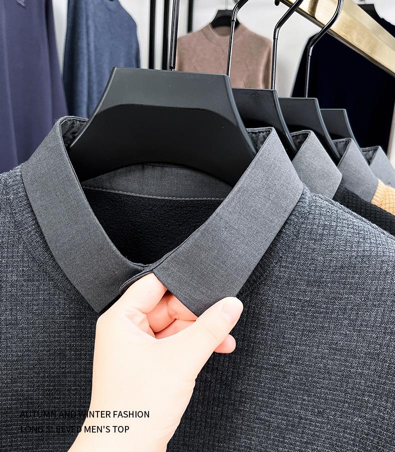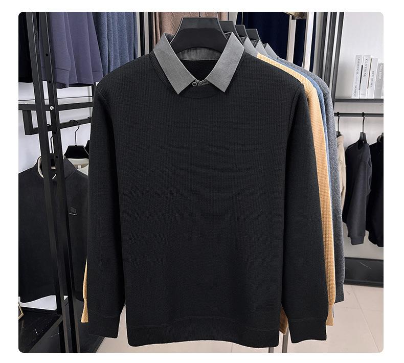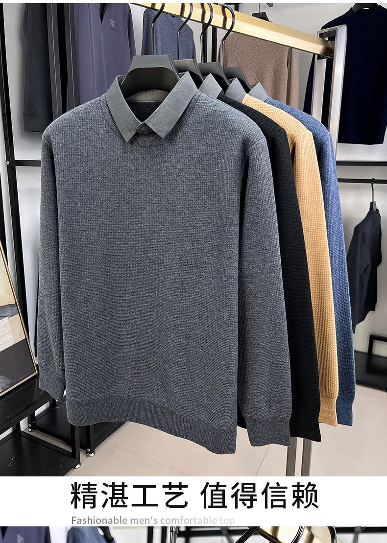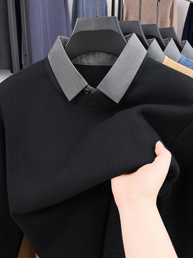 Suéter de dos piezas con forro polar para hombre, nuevo suéter de invierno con cuello de camisa, grueso y cálido, con lana de oveja.