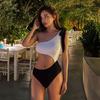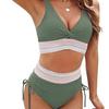 2025 Nuevo Bikini Europeo y Americano Profundo en V Transfronterizo Amazon Sexy Cintura Alta Cubre Vientre Cordón Vacaciones Aguas Termales Traje de Baño