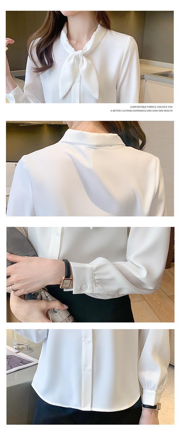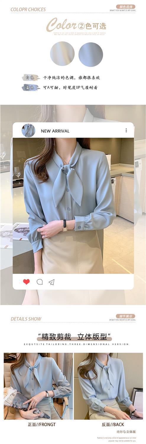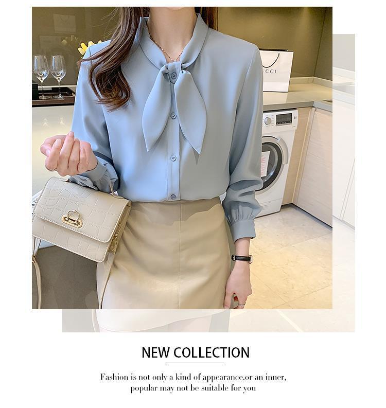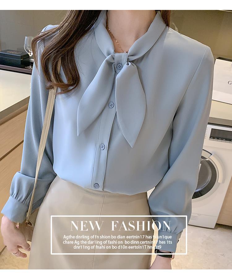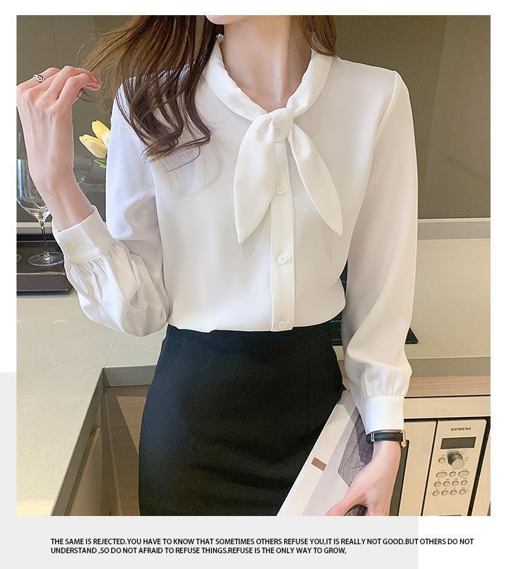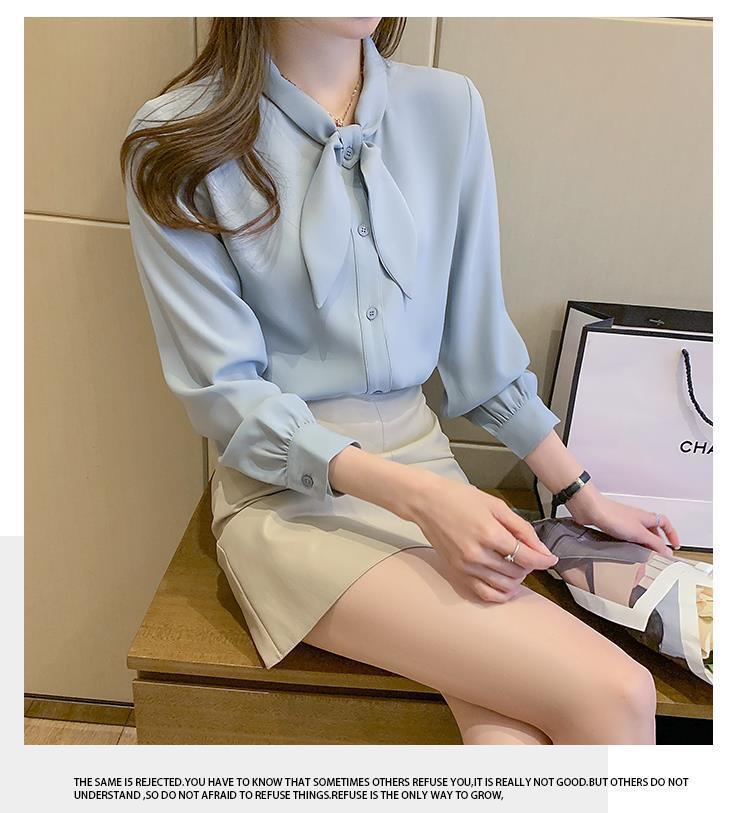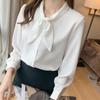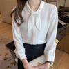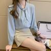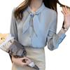 Camisa de gasa de manga larga con cordones para mujer, diseño elegante, estilo nicho, de principios de otoño