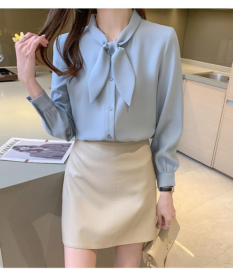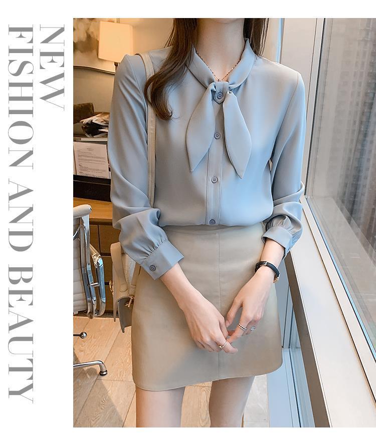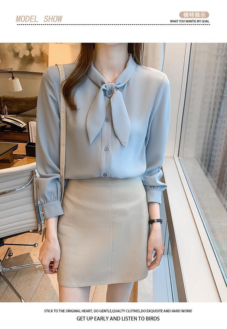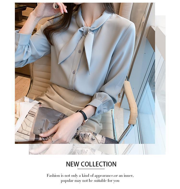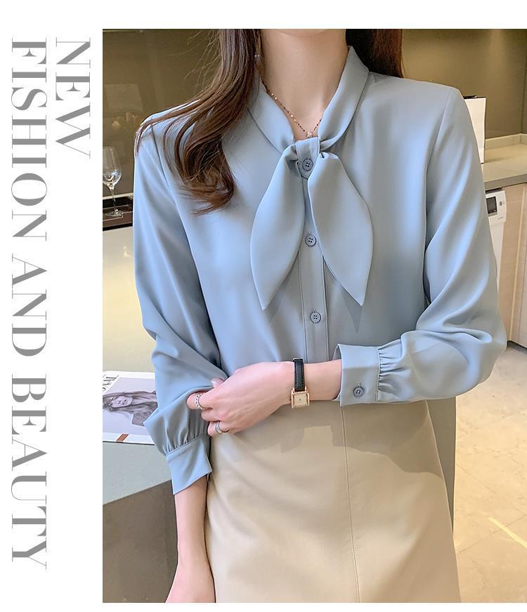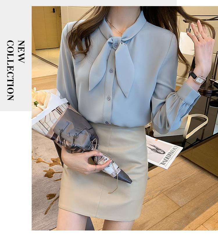 Camisa de gasa de manga larga con cordones para mujer, diseño elegante, estilo nicho, de principios de otoño