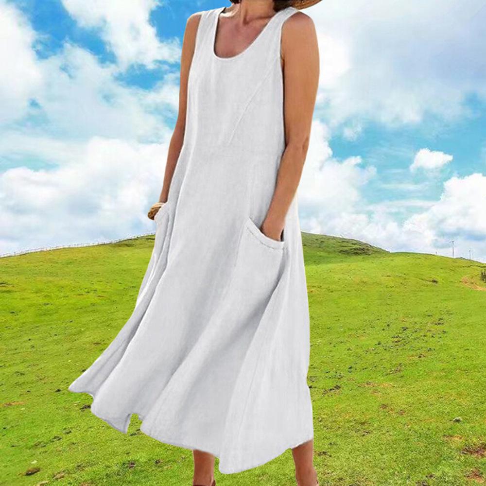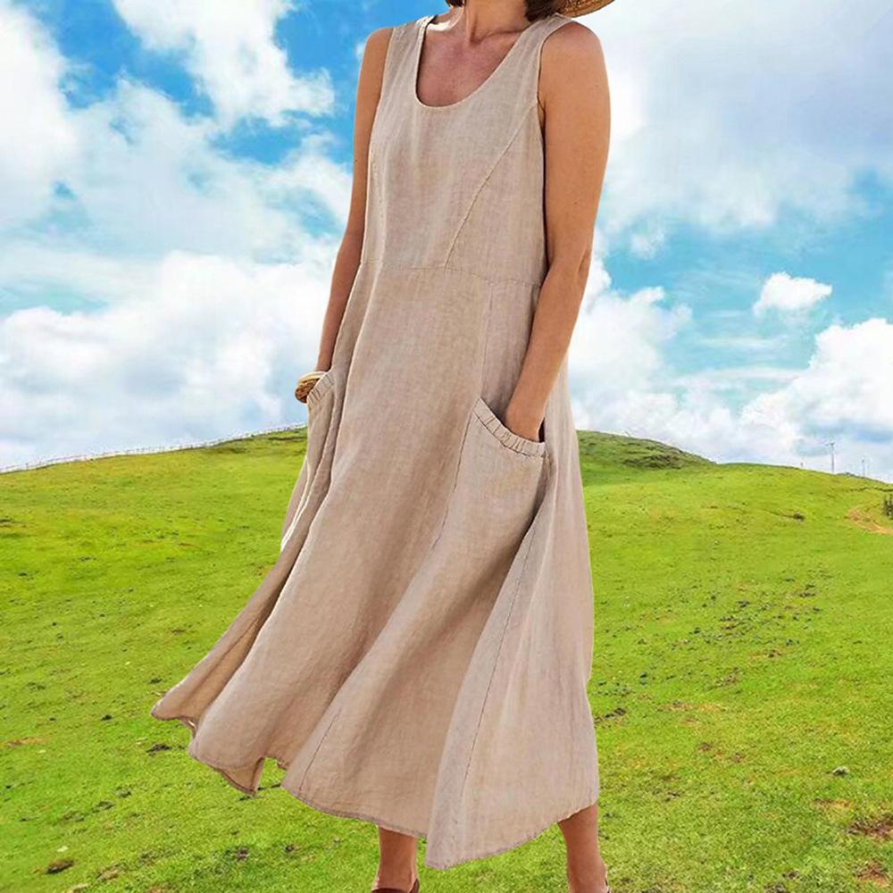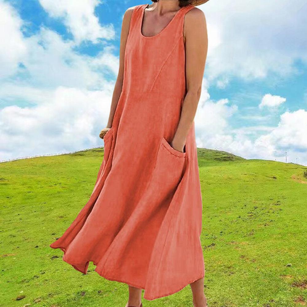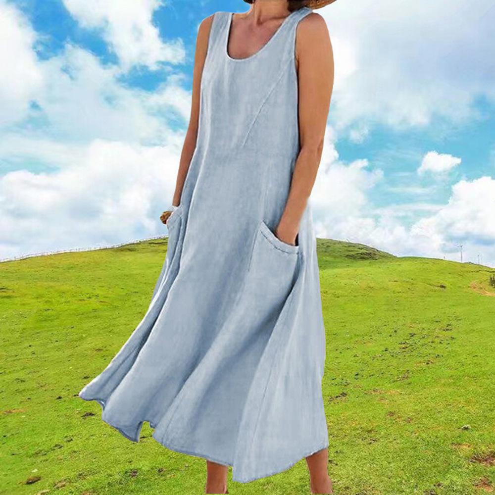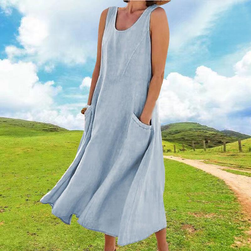 Vestido tipo chaleco de color liso con cuello redondo y sin mangas con bolsillo, moda de comercio exterior europeo y americano, para mujer, Amazon, verano 2023