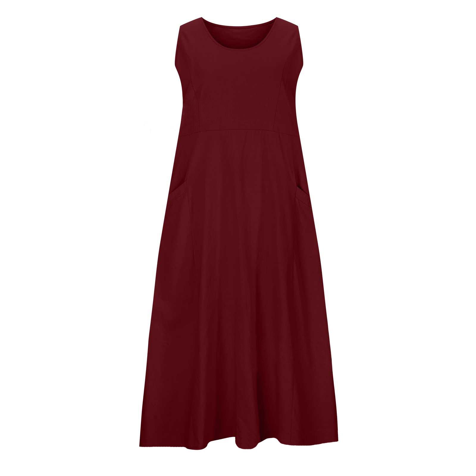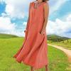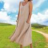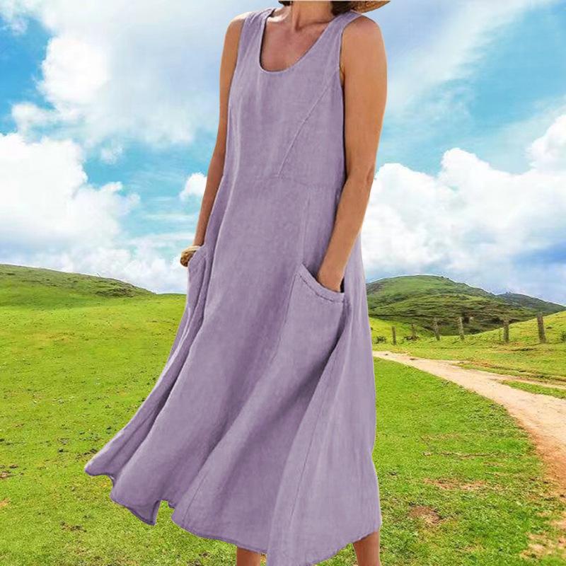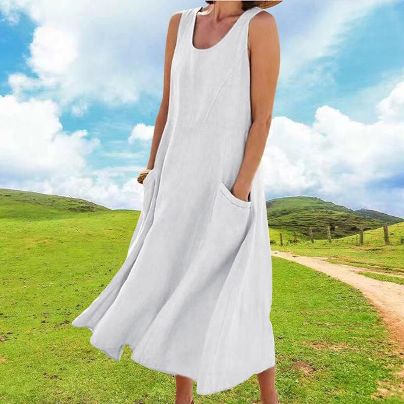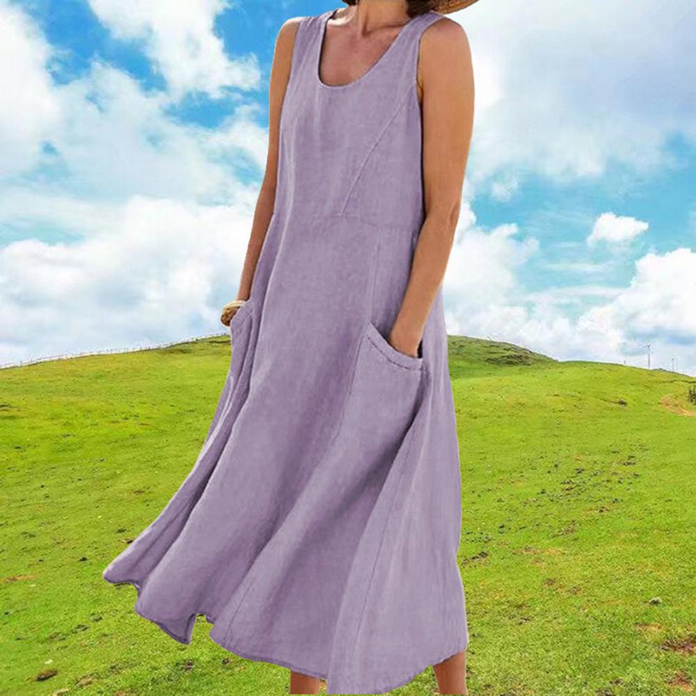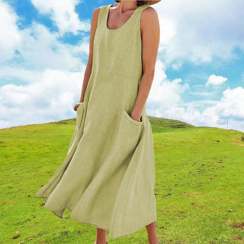 Vestido tipo chaleco de color liso con cuello redondo y sin mangas con bolsillo, moda de comercio exterior europeo y americano, para mujer, Amazon, verano 2023