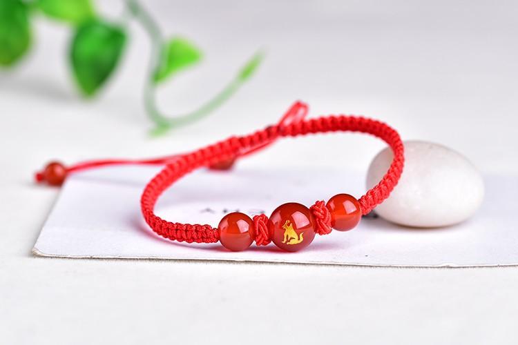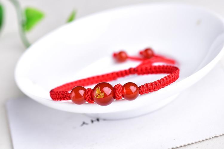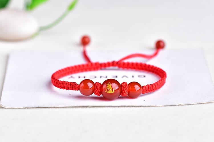 Pulsera de ágata roja natural al por mayor para mujer, pulsera de ágata de los doce signos del zodiaco con bronceado, pulsera ajustable, joyería