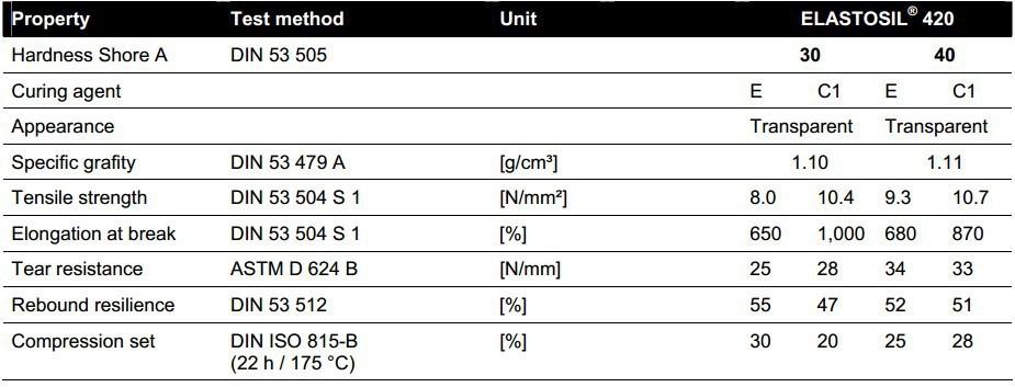 Los productos ELASTOSIL de diferentes grados de dureza de la serie R420/X (x=30,40,50,60,70) se pueden mezclar en cualquier proporción para obtener productos del grado de dureza intermedio deseado.