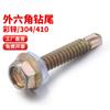 Tornillo autorroscante hexagonal externo de acero inoxidable 304/410, tornillo de cola de milano para baldosas de acero de color, tornillo autoperforante