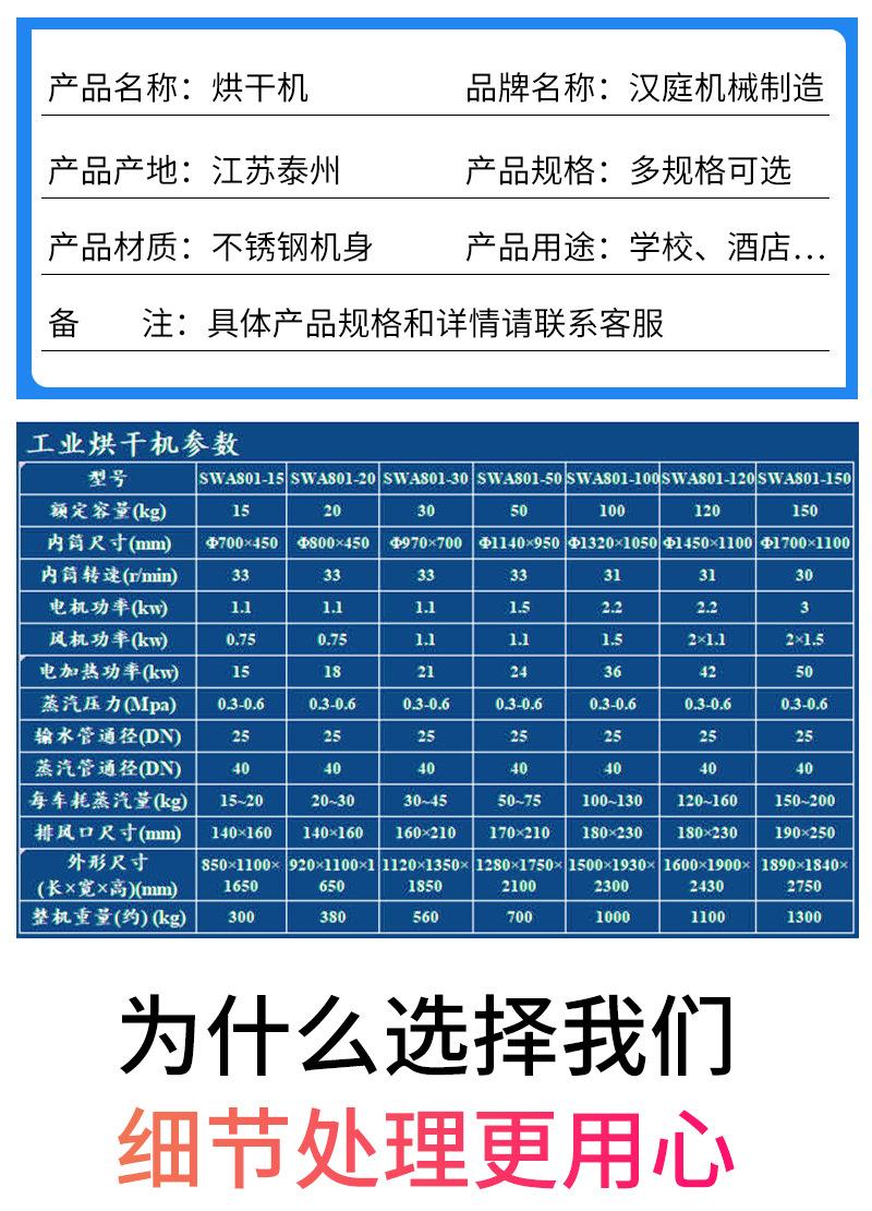 Secadora industrial grande de 100 kg para casas de huéspedes, hoteles, equipos de lavado y secado de agua, secadora de hotel