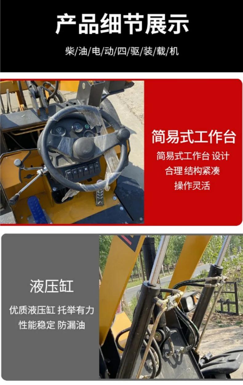 Los fabricantes suministran pequeñas cargadoras eléctricas con tracción en las cuatro ruedas para granjas, pequeñas cargadoras con tracción en las cuatro ruedas, pequeñas carretillas elevadoras agrícolas.