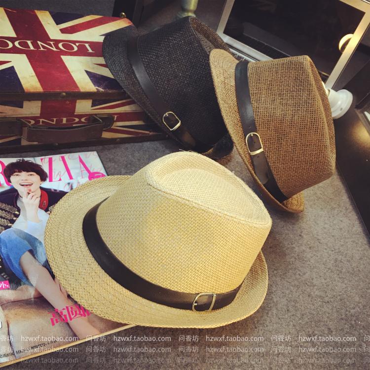 Sombrero de paja para exteriores de estilo coreano, sombrero de playa para parejas, sombrero de jazz con protección solar británico para hombres y mujeres, ideal para primavera y verano.