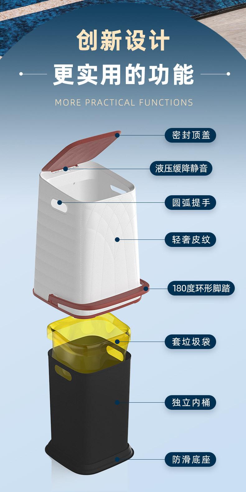 Cubo de basura ligero de lujo con pedal para el hogar, sala de estar, baño, inodoro, grande y pequeño con tapa, cubo de almacenamiento de plástico con pedal