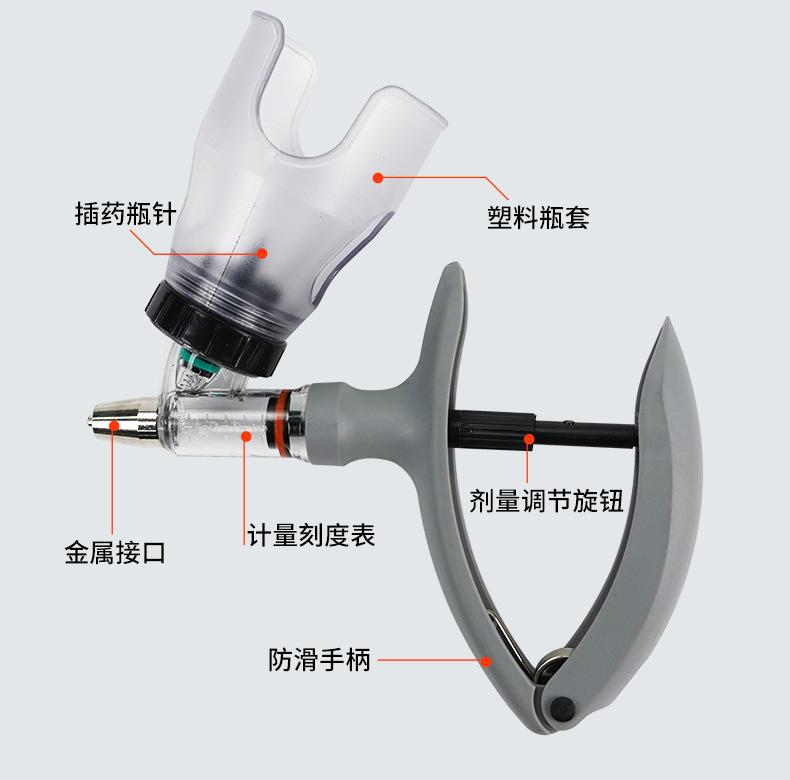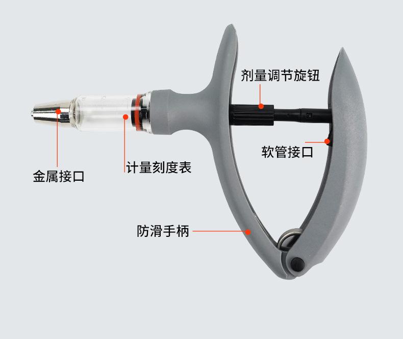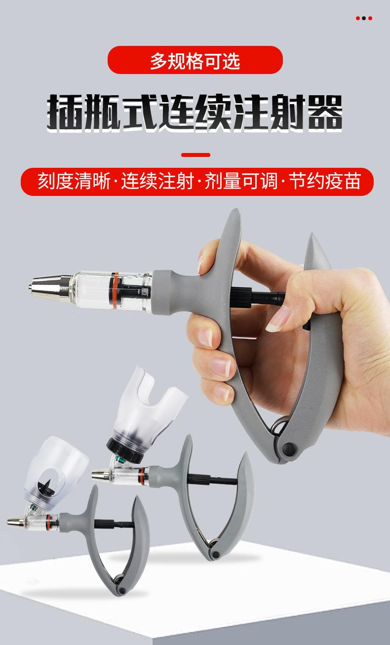 Jeringas para vacunas veterinarias, jeringas continuas para cerdos, ganado vacuno y ovejas, jeringas ajustables para pollos, patos y gansos, jeringas continuas con inserción de botella, jeringas de catéter, jeringas veterinarias