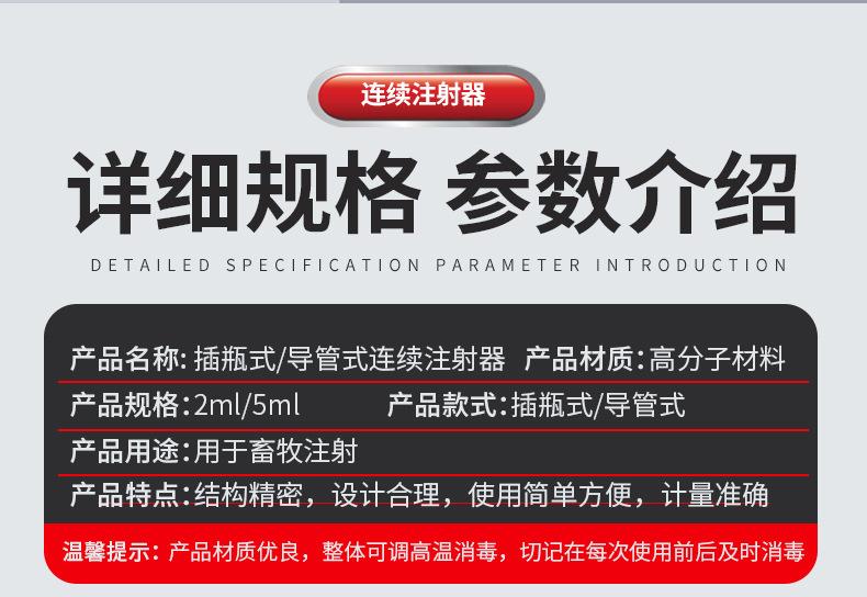 Jeringa continua para pollo, pato, botella de 2 ml, jeringa continua para cerdos, ganado ovino, jeringa ajustable de 5 ml para vacunas veterinarias.