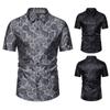 Camisa de manga corta con botones para hombre, informal, con estampado de rosas, corte entallado, C36P40