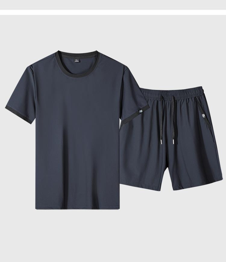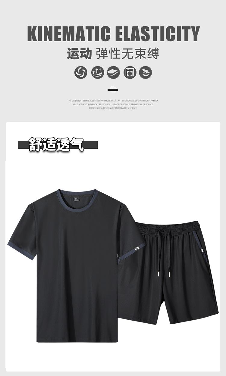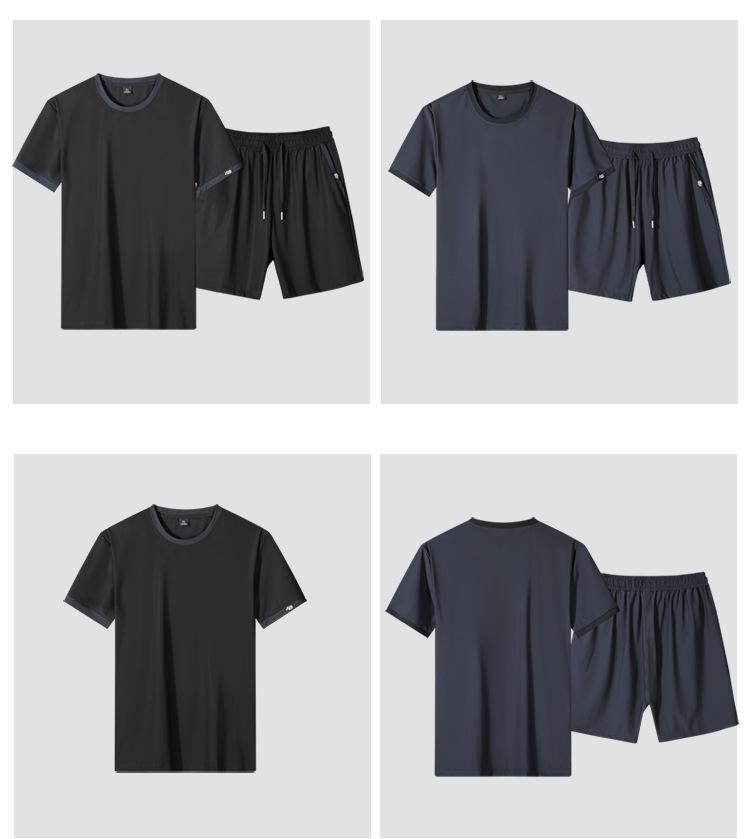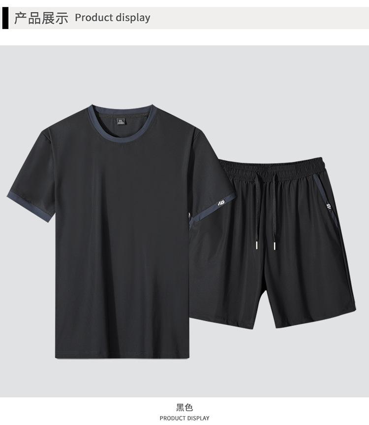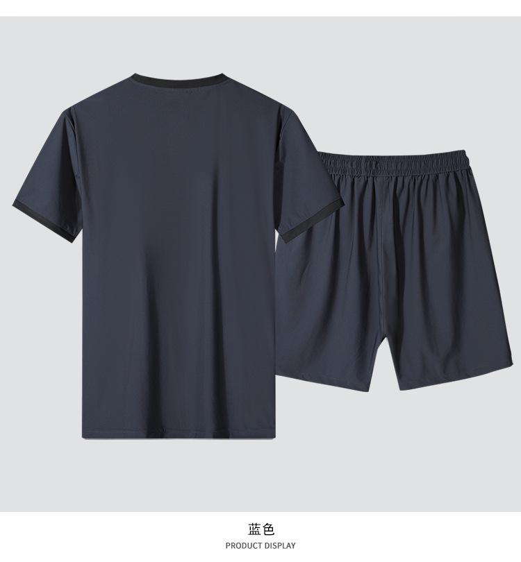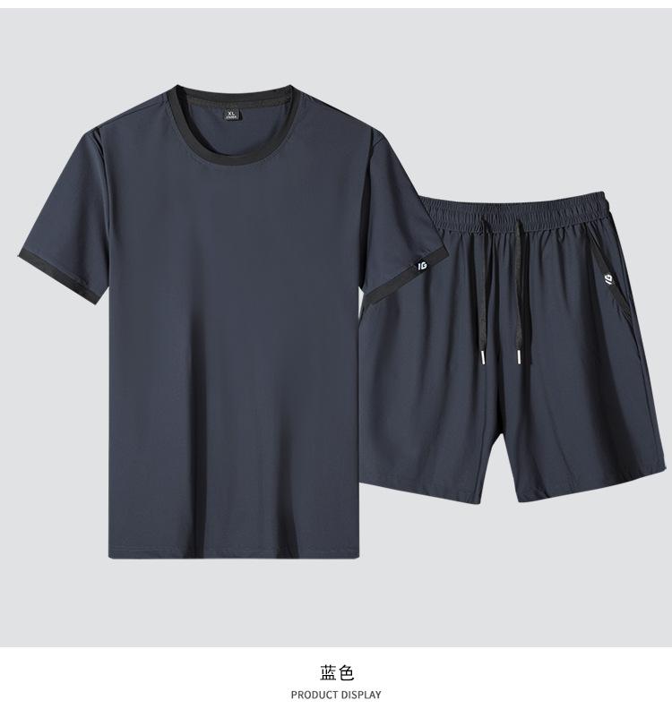 Traje deportivo de seda de hielo para hombre, de verano, nuevo, de secado rápido, camiseta de manga corta, pantalones cortos, traje informal de dos piezas, muy elástico y ultrafino.