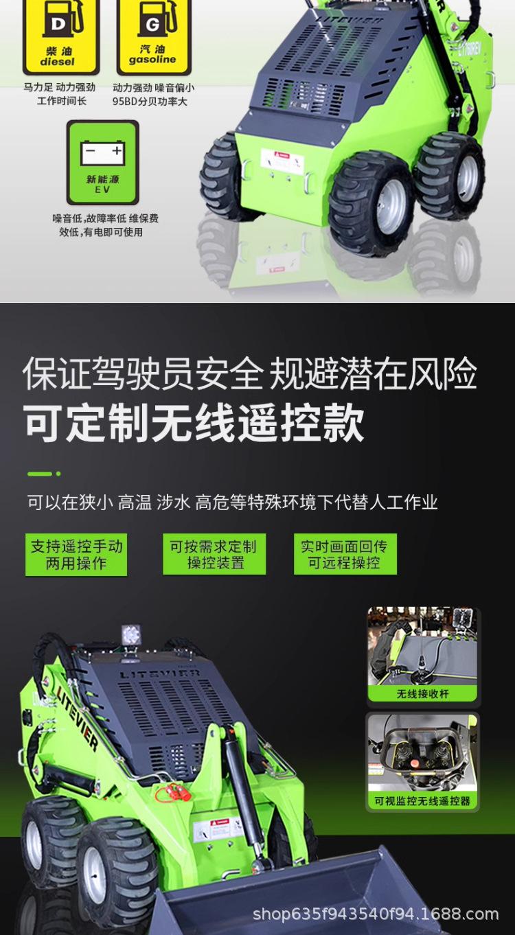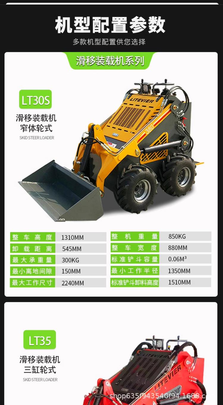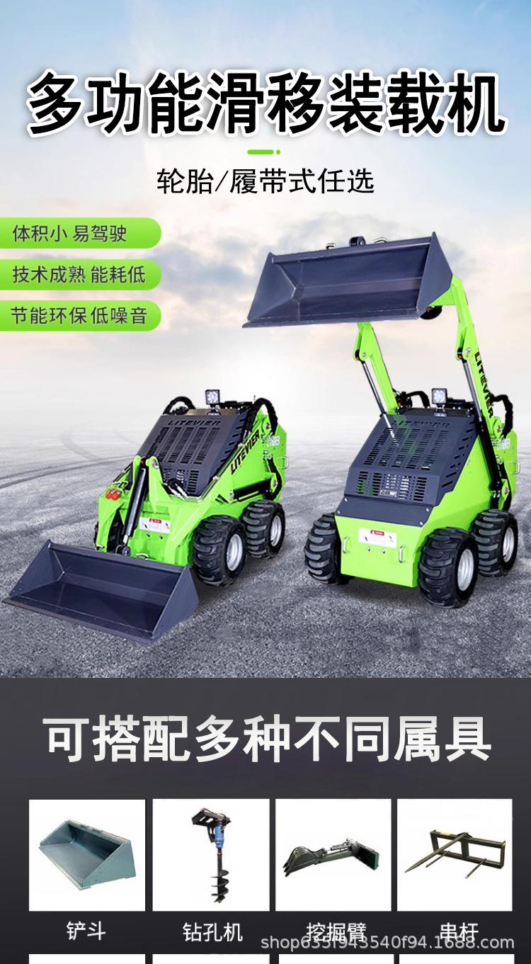 Minicargadora de dirección deslizante con ruedas, multiorugas, tracción en las cuatro ruedas, carretilla elevadora pequeña, minimáquina de construcción multifuncional, camión