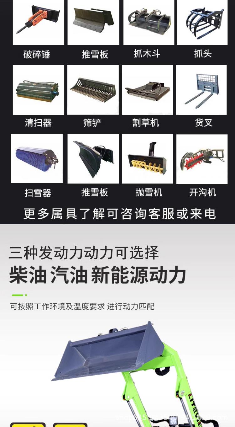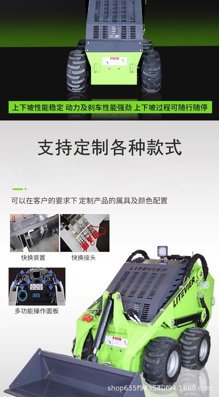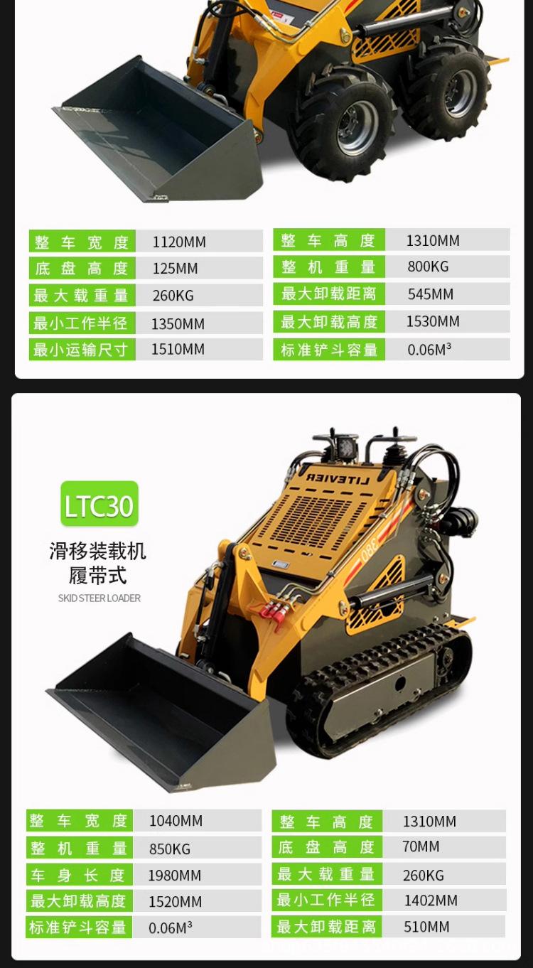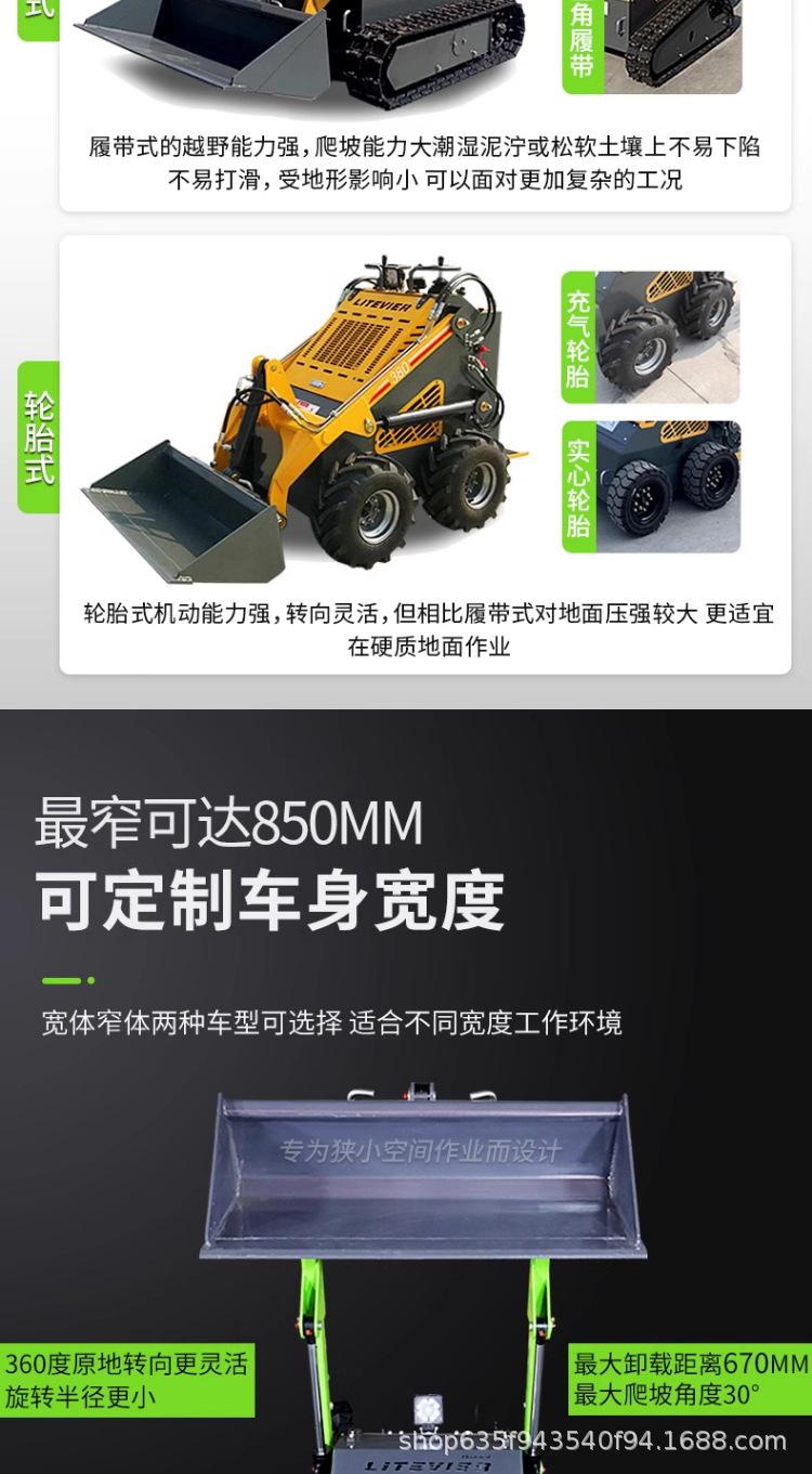 Minicargadora de dirección deslizante con ruedas, multiorugas, tracción en las cuatro ruedas, carretilla elevadora pequeña, minimáquina de construcción multifuncional, camión