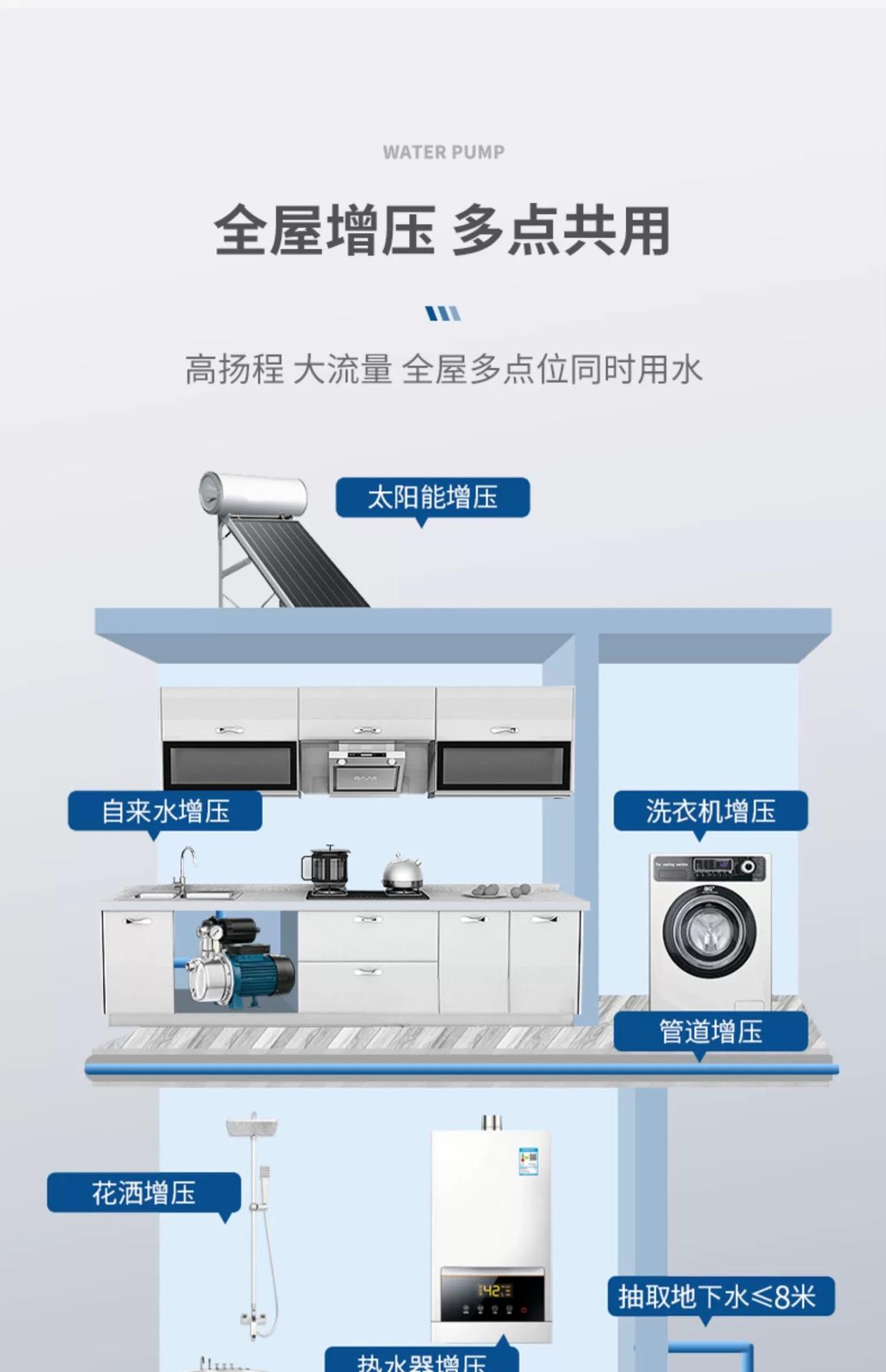 Bomba de chorro autocebante para el hogar, 220 V, automática, de alta elevación, de refuerzo, de acero inoxidable