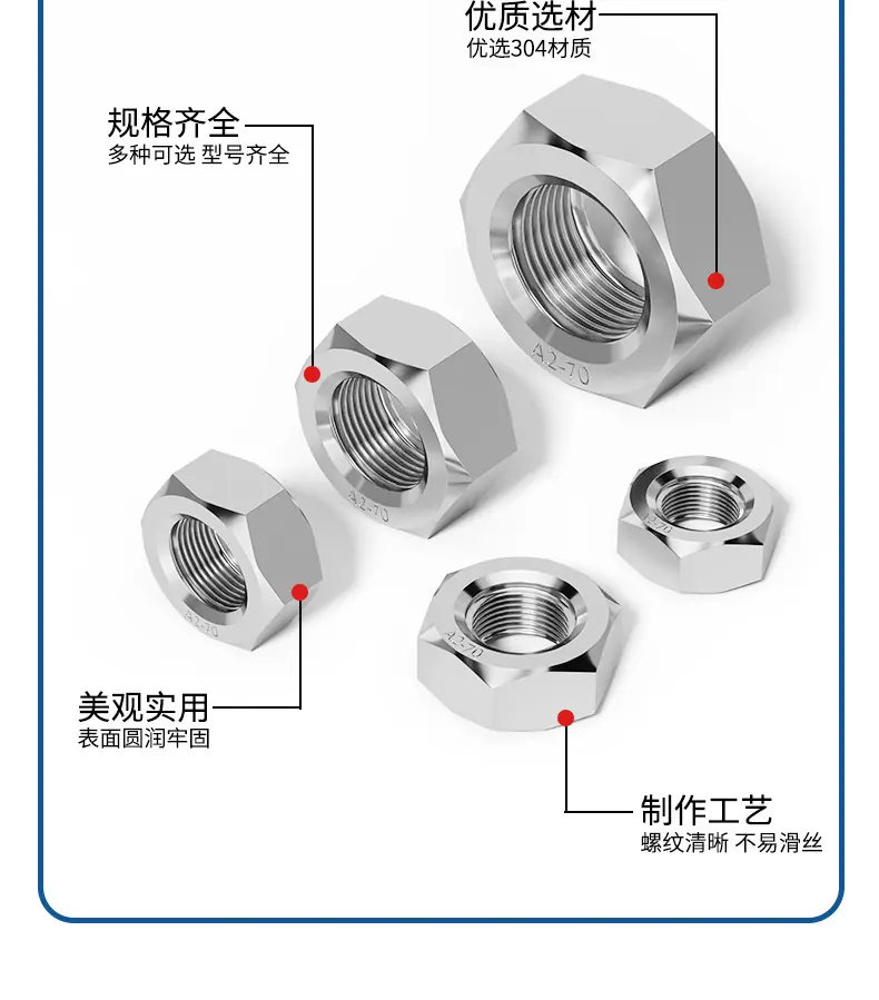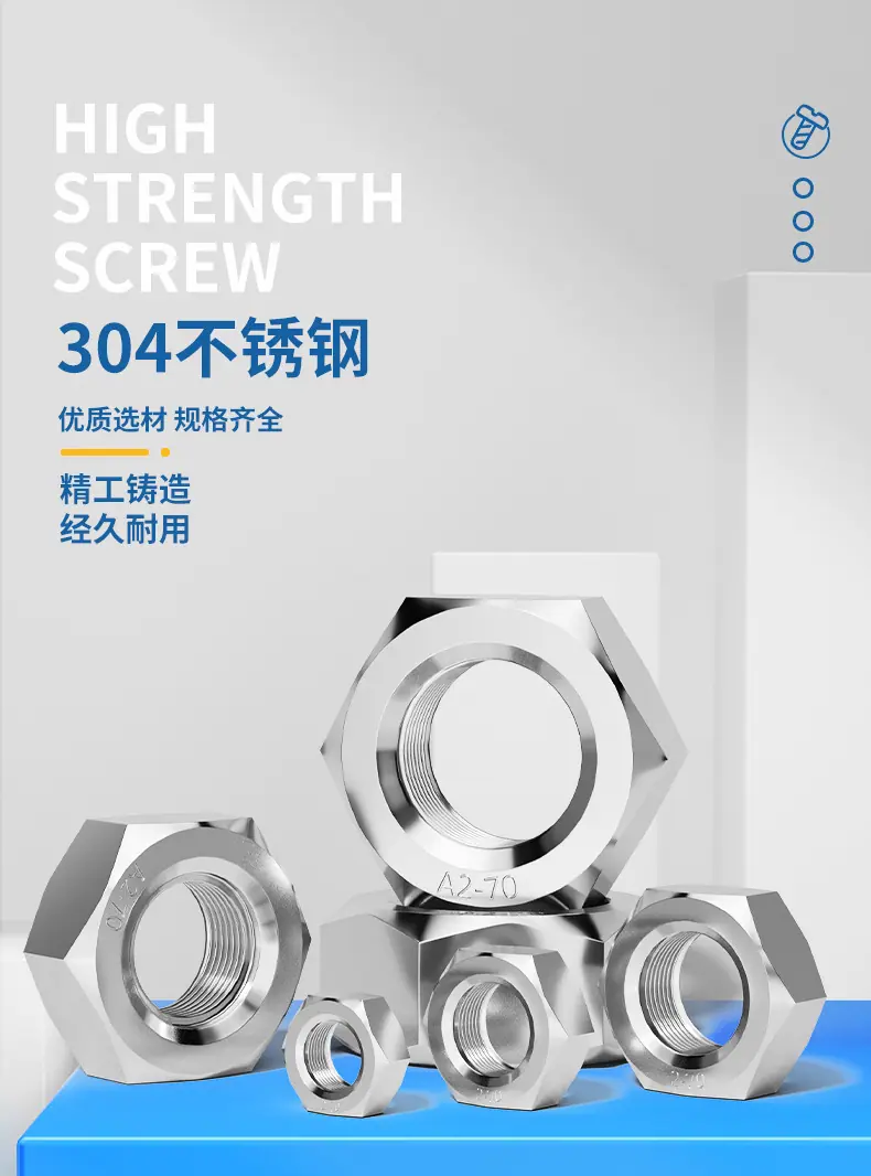 Tuerca hexagonal de acero inoxidable 304, tuerca hexagonal externa DIN934, tapa de tornillo de bloqueo M2M3M4M20
