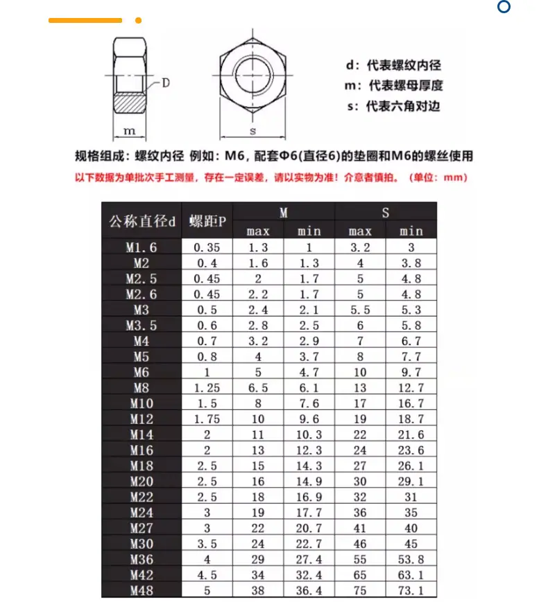 M1.6, M2, M2.5, M3, M4, M5, M6, M8, M10, M12, M14, M16, M18, M20, M22, M24, M27, M30, M33, M36, M39, M42, M45, M48, M52, M56, M64