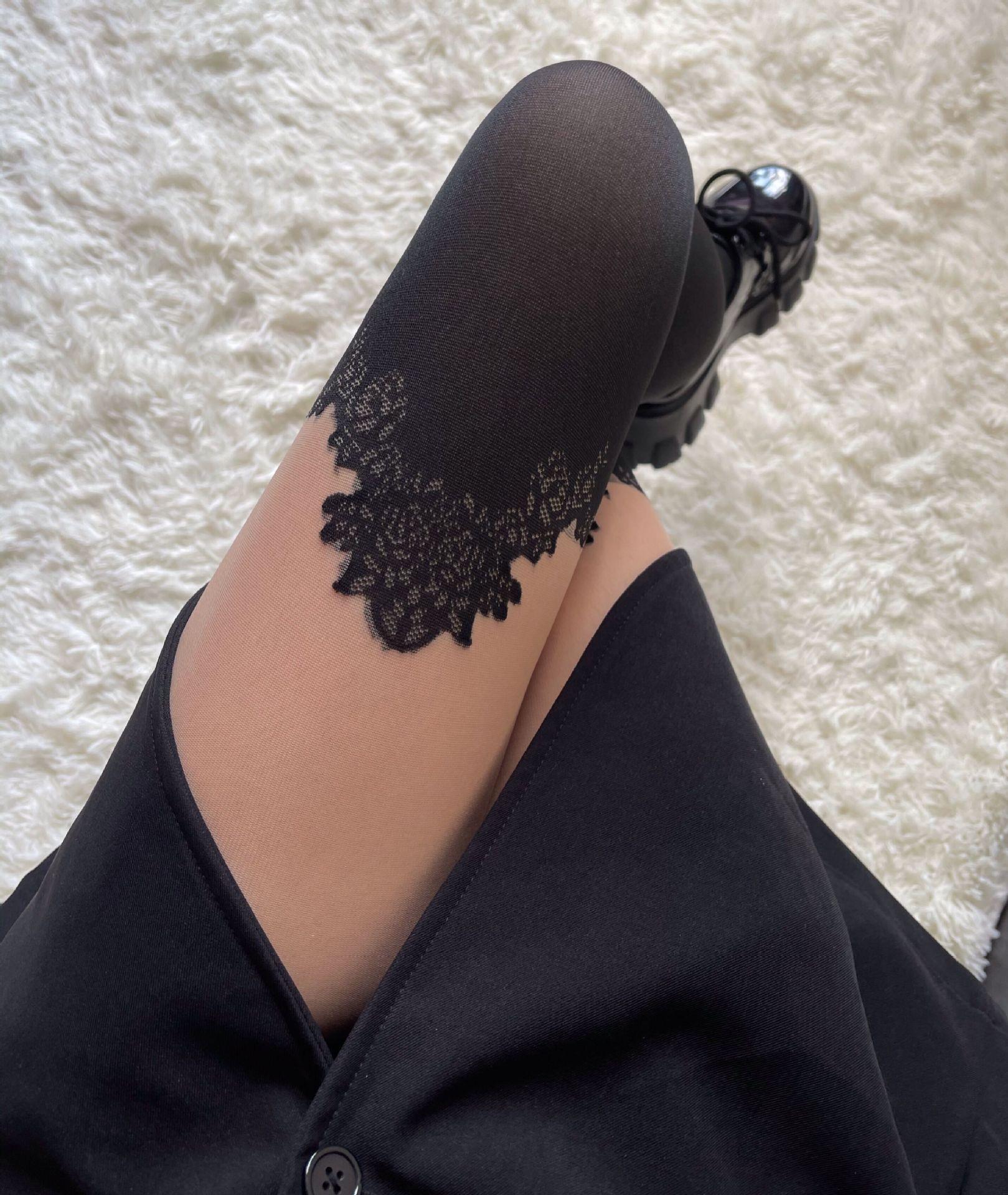 Compra Pantimedias de estilo japonés con encaje sexy y encantador para discoteca, con costuras falsas de tubo alto y rosas, calcetines falsos por encima de la rodilla, base de pantimedias al por mayor en Joom.pro