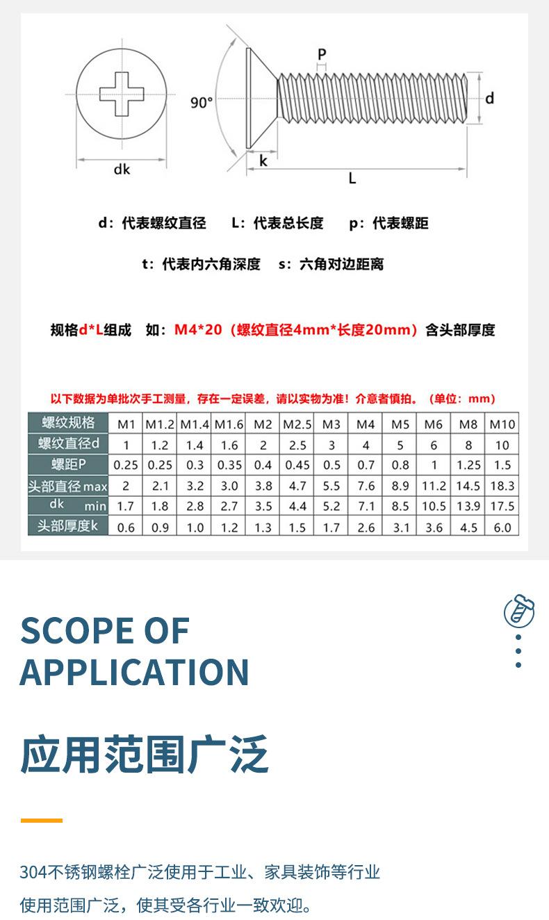 Tornillos de acero inoxidable 304 al por mayor, tornillos de cabeza plana, tornillos de cabeza avellanada cruzada, tornillos pequeños M2M2.5M3M4M5M6