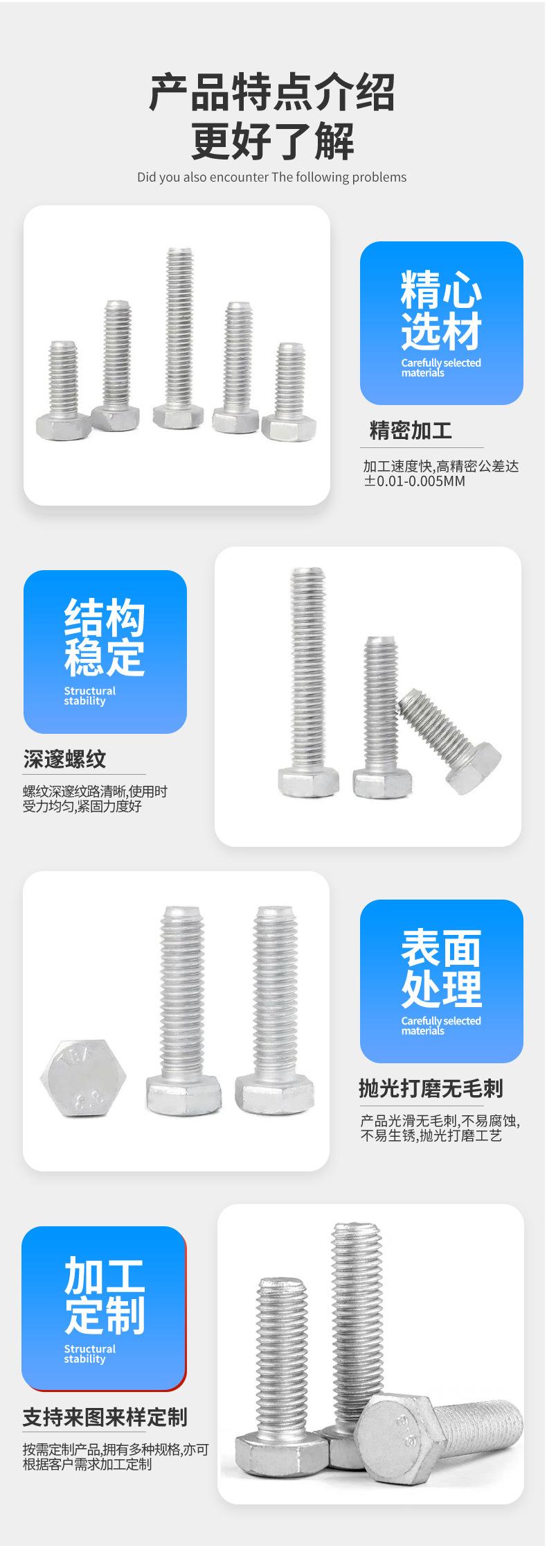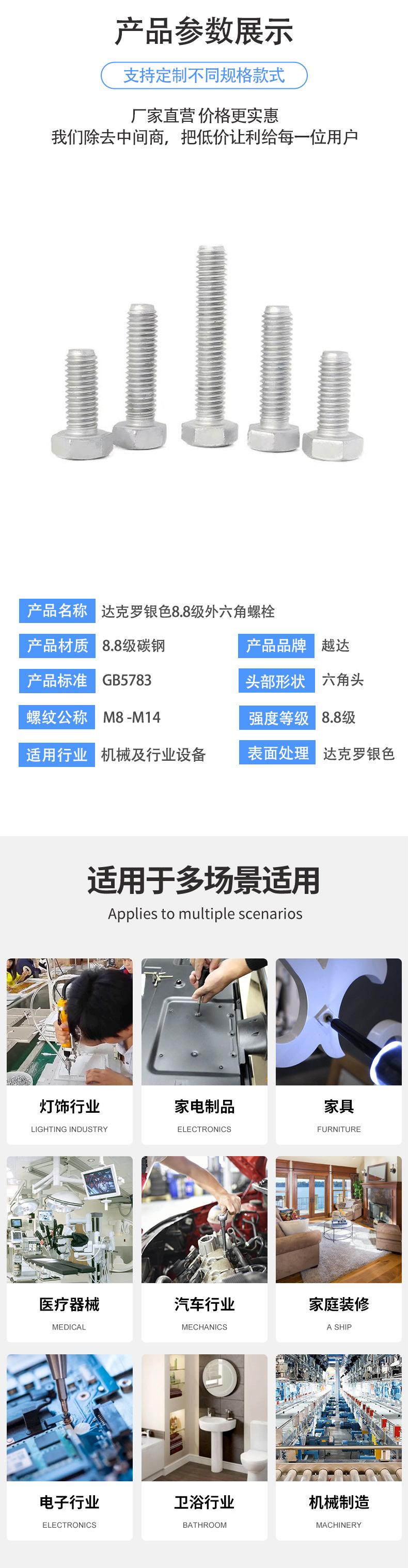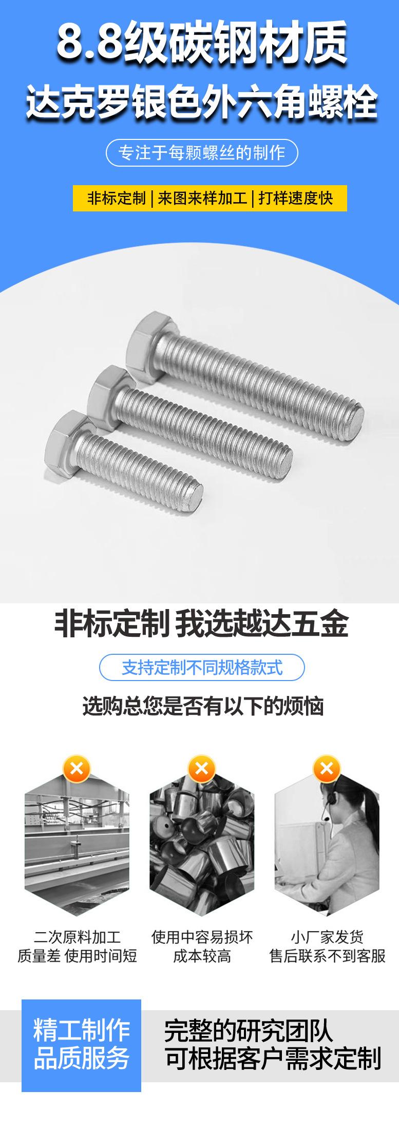 Compra Perno hexagonal externo de acero al carbono de alta resistencia, grado 8.8, con dientes completos, M8-M14, GB5783, plata Dacrome al por mayor en Joom.pro