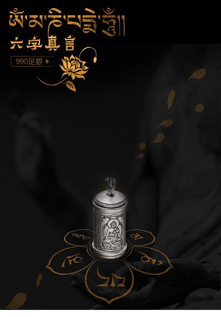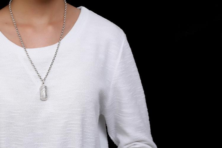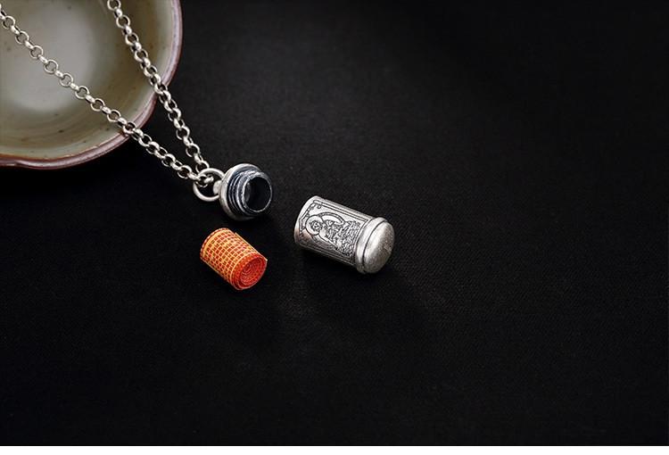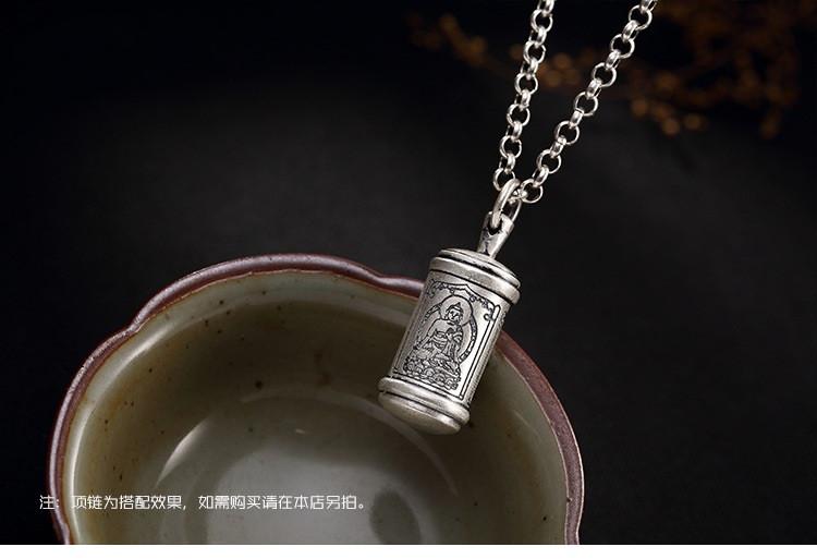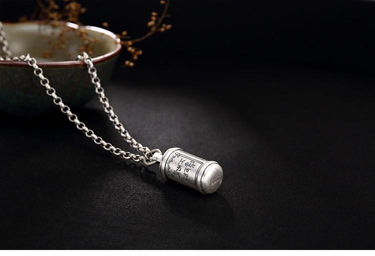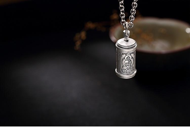 Colgante de mantra chino de plata esterlina, amuleto para llevar en el cuello para hombres y mujeres, collar con seis palabras, mantra, esmalte de colores, luz, caja de Buda