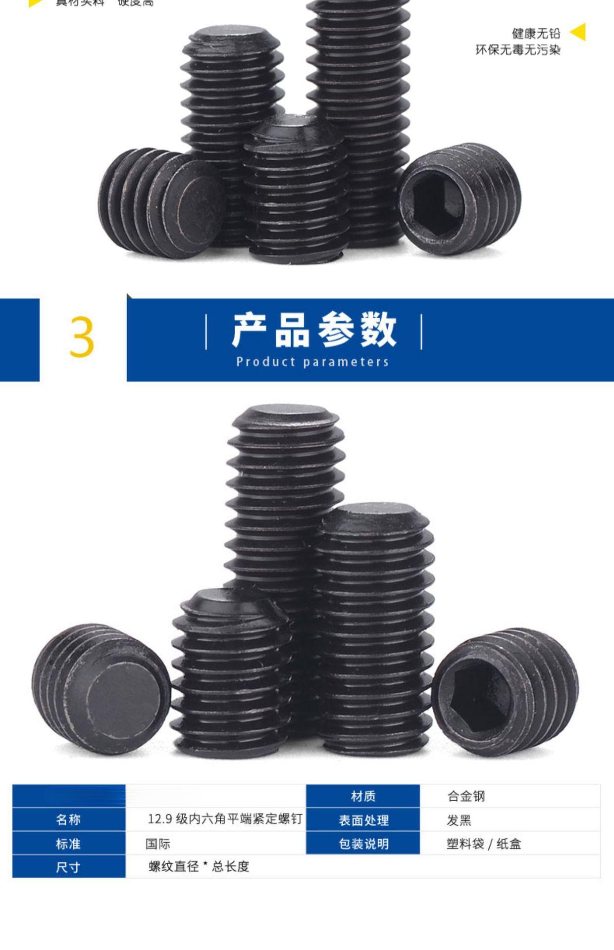 Tornillo de cabeza hexagonal de extremo plano de grado 12,9, para máquina de medición, tope superior, tornillo sin cabeza de alambre m3m4m5m6m8m10m12