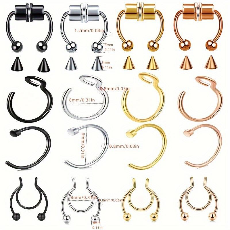 Anillo nasal con imán de acero inoxidable de 16 piezas, combinación clásica neutra, ideal para la venta en Amazon.