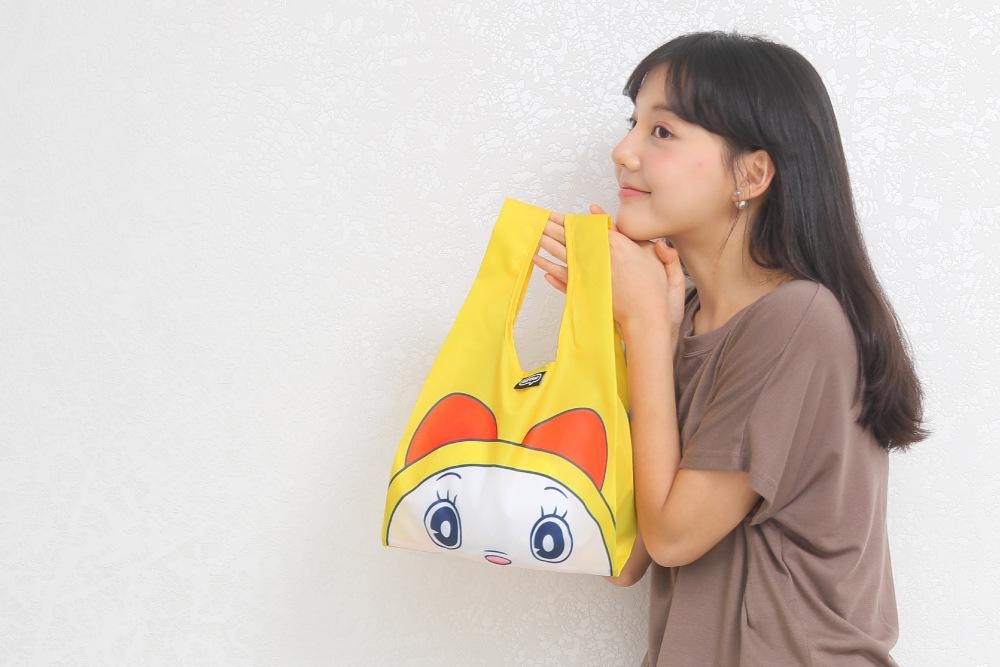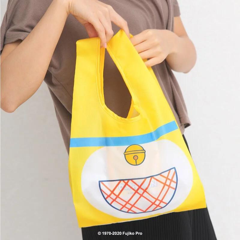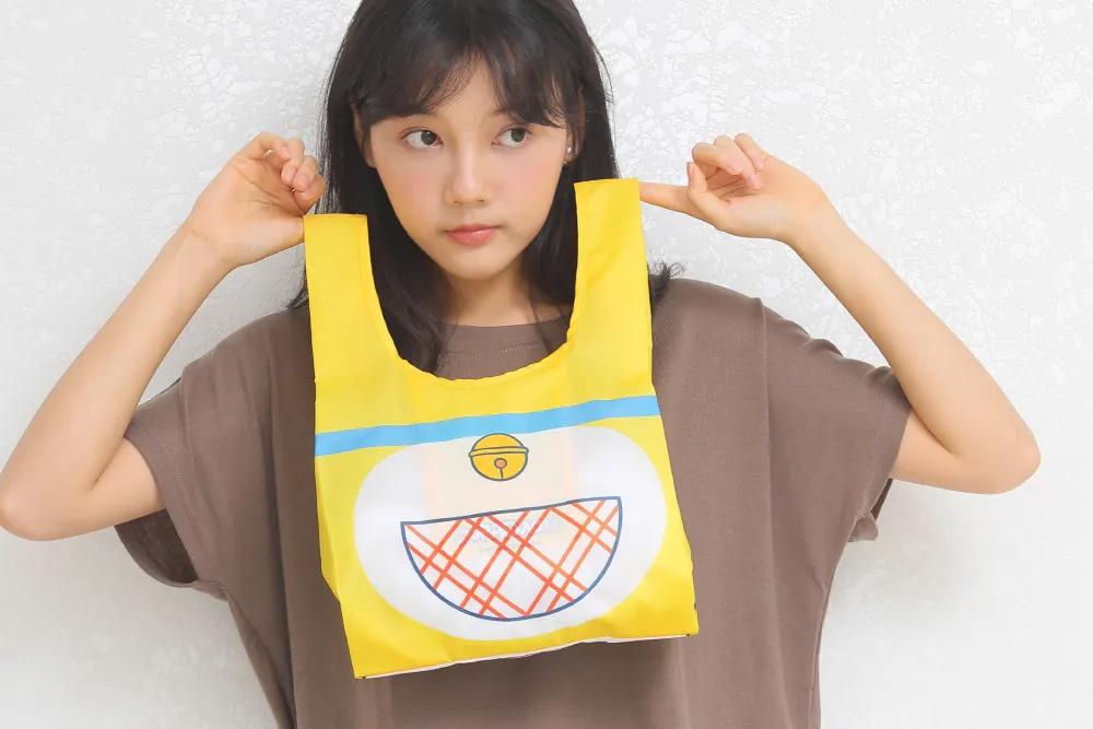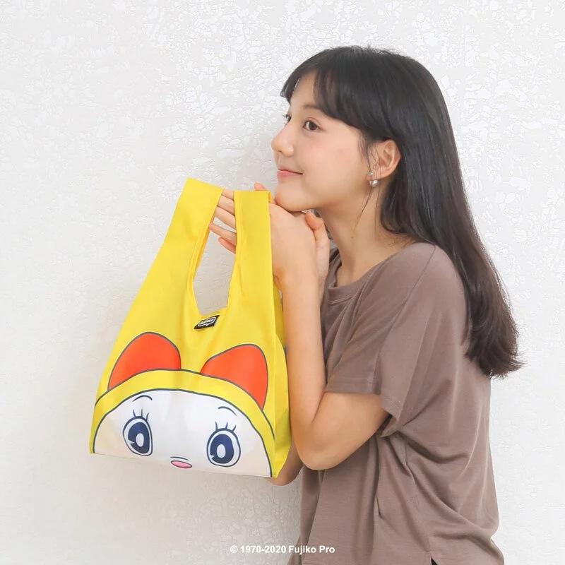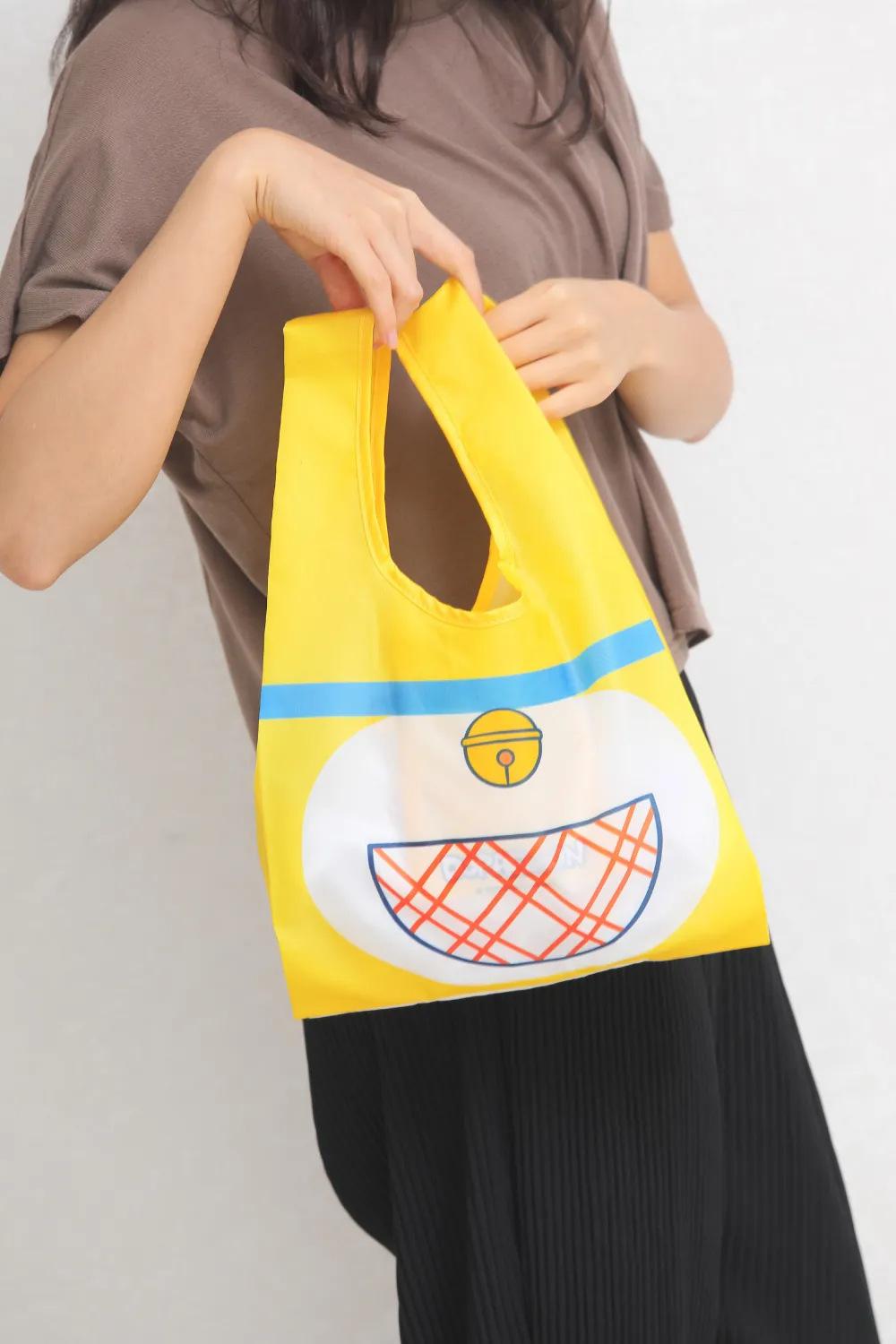 Bolso de Mano Plegable con Estampado de Doraemon Estilo Japonés Lindo y Dulce Versión Amarilla Completa Estilo Lindo