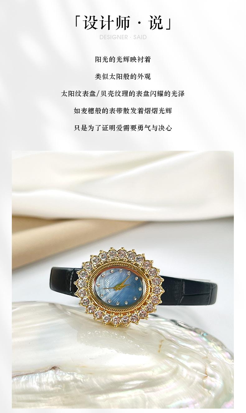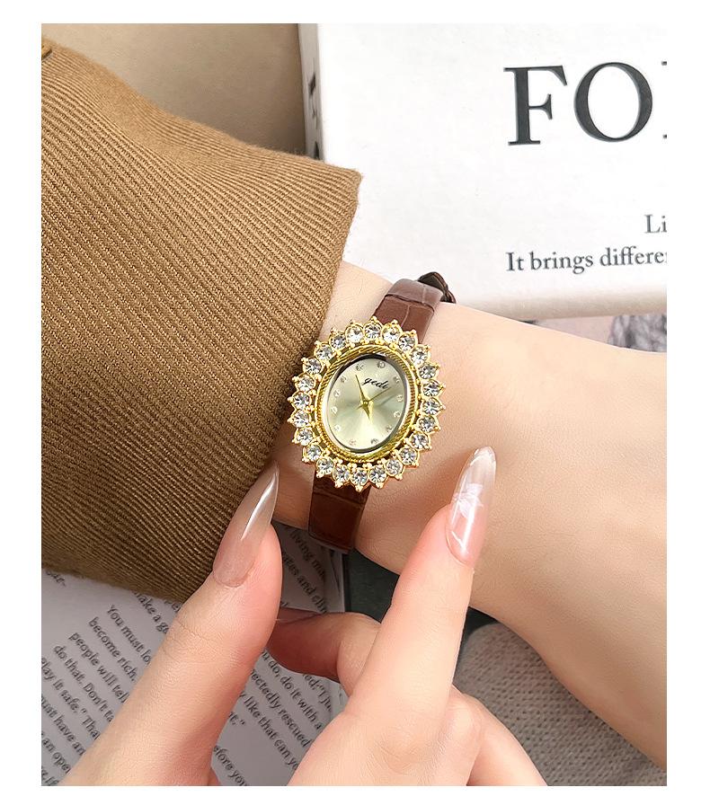 Compra Reloj de cuarzo para mujer Goldie Light, de lujo, con diamantes, pequeño, exquisito y elegante, con diseño de girasol. al por mayor en Joom.pro