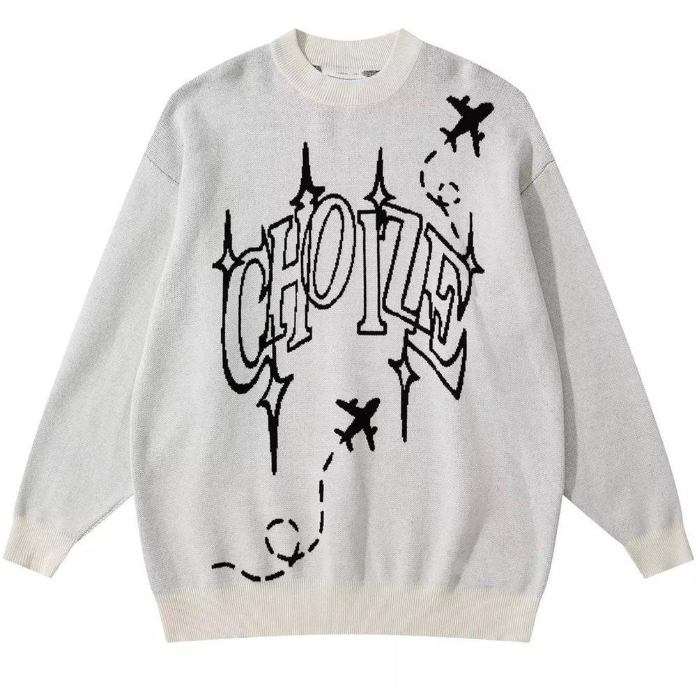 Suéter unisex holgado de manga larga y cuello redondo con estampado de dibujos animados del alfabeto casual callejero europeo y americano de otoño e invierno para hombres y mujeres