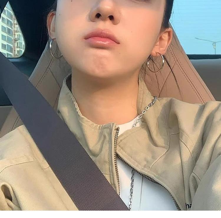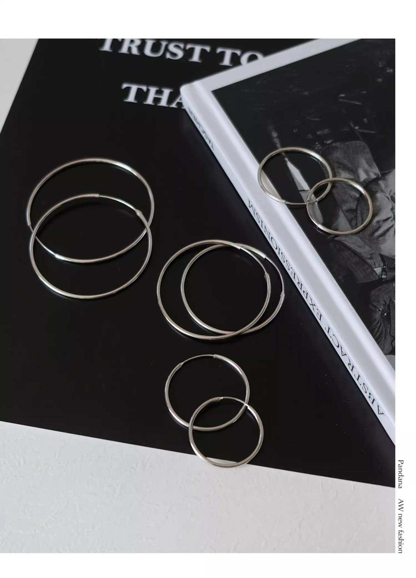 Compra Aretes de aro grandes plateados aretes de pin plateados para mujer aretes hebilla para la oreja aretes de anillo liso elegantes sentido avanzado lujo ligero viento frío anillo para la oreja al por mayor en Joom.pro