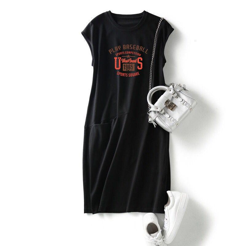 Verano Nuevo Popular Suelto y Delgado Vestido Camiseta Estampado para Mujer Estilo Coreano Falda Midi de Hada