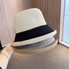 Sombrero de Pescador con Lazo Japonés para Mujer Verano Transpirable Protector Solar Sombrero de Sol Tela Costura de Paja Plegable Ala Curvada Sombrero de Paja Parasol