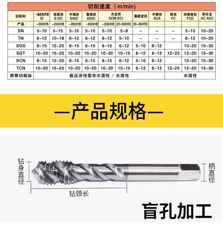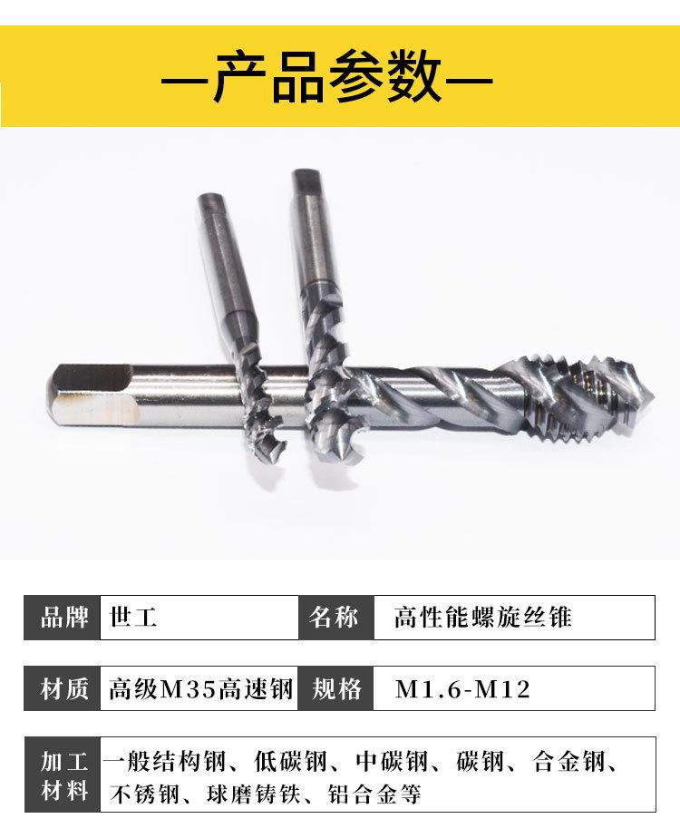 M2.5x0.45 spiral tap, M3x0.5 spiral tap, M4x0.7 spiral tap, M5x0.8 spiral tap, M6x1 spiral tap, M8x1.25 spiral...