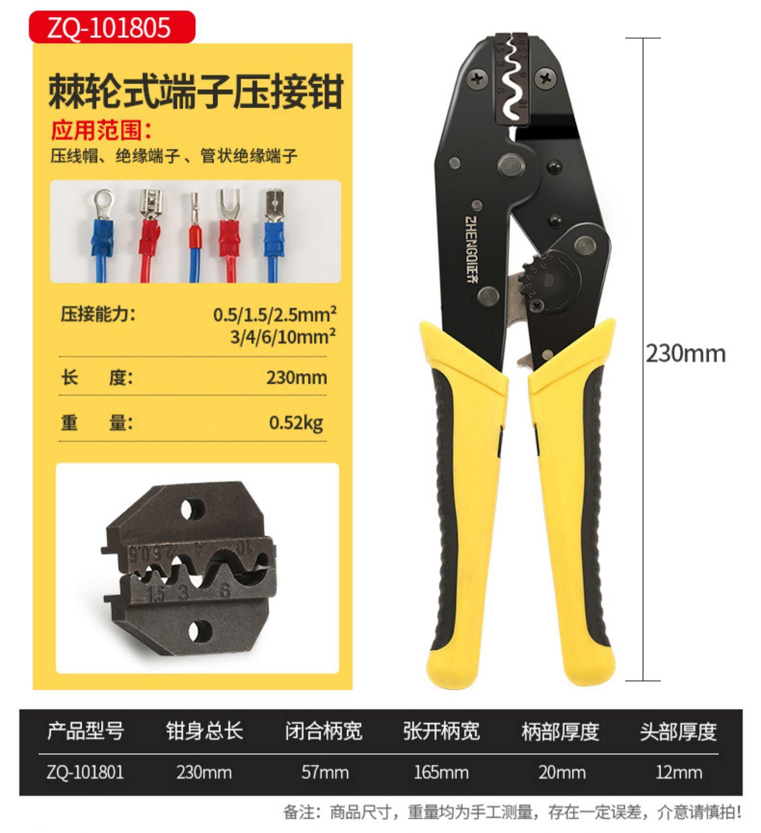 Alicates para crimpar cables, alicates para prensar terminales en frío, conectores de punta abierta, punta de cobre, terminales eléctricos, accesorios para herramientas